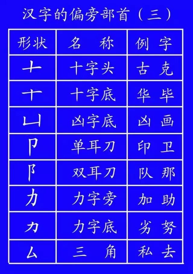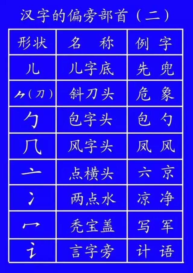① 有钩——七、儿、几(冗、亢、机、秃、虎)。