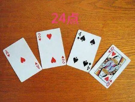 24点难题扑克牌大家都熟悉吗? 我们一起来看一看:扑克牌中的24点游戏。 “算24点”是一种数学游戏,它始于何年何月已无从考究,但它以独具的数学魅力和丰富的内涵正逐渐被越来越多的人们所接受。这种游戏方式简单易学,健脑益智。 游戏规则:一副扑克牌一共54张,抽去大小王剩下52张,J、Q、K可以当成是11、12、13。(当然我们也可以把J、Q、K拿走,只用1~10这40张牌)任意抽取4张牌用加、减、乘、除(可加括号)把牌面上的数算成24。每张牌必须用一次且只能用一次。 规则是不是很简单呀?我们赶快算一算吧! 小技巧:计算时,不可能把牌面上的4个数的不同组合形式一一去试,更不能瞎碰乱凑。刚开始的时候,可能需要花很长的时间去想一种解法,我们可以慢一点,引导利用一些规律:比如利用3×8=24、4×6=24求解, 把牌面上的四个数想办法凑成3和8、4和6,再相乘求解。实践证明,这种方法是利用率最大、命中率最高的一种方法。 以下是14道24点难题,请动手试一试吧!