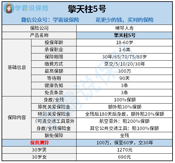 接下来, 就来分析擎天柱5号定期寿险有哪些亮点: