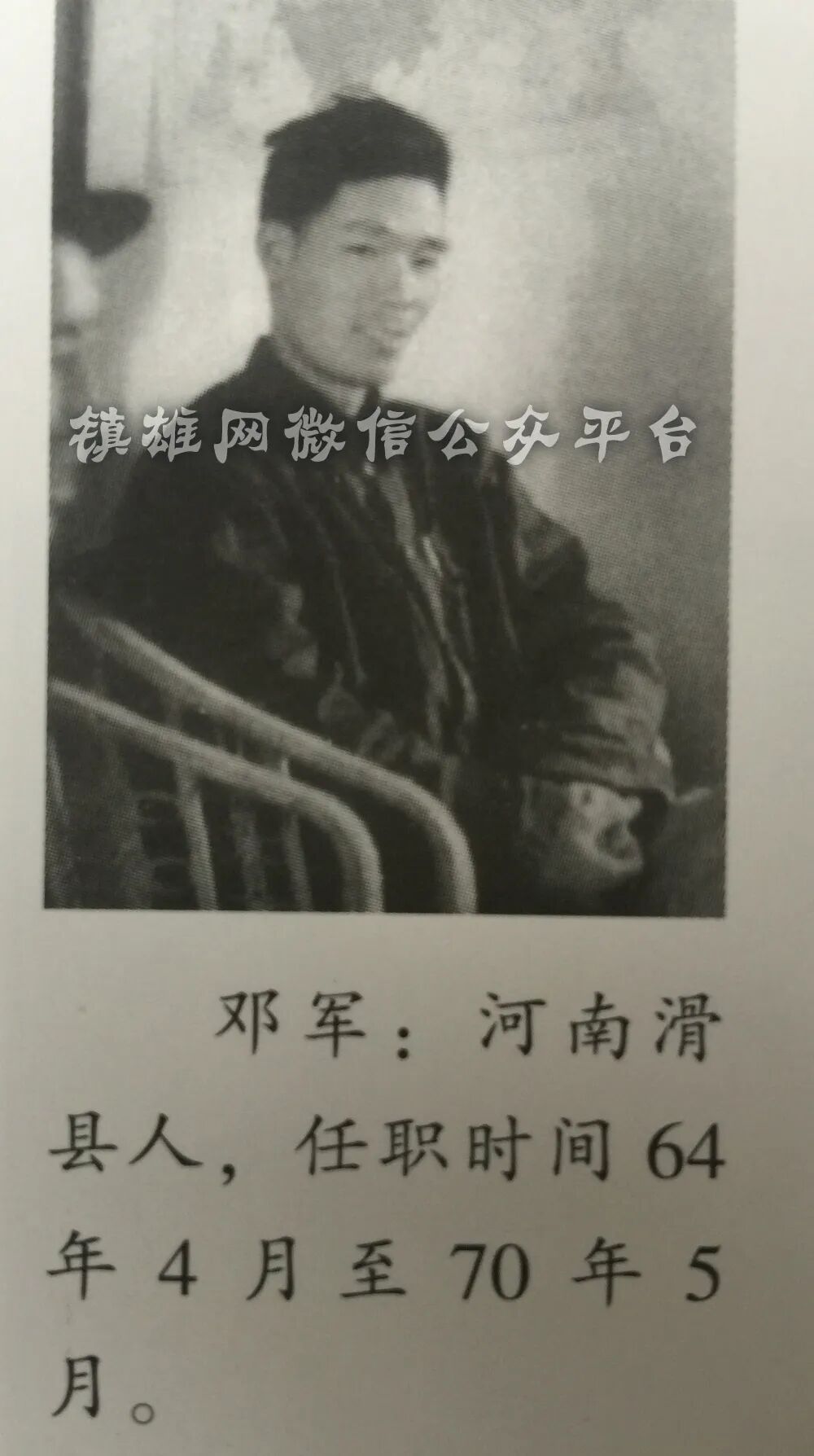 邓 军:河南滑县人,1964年4月至1970年5月任书记。