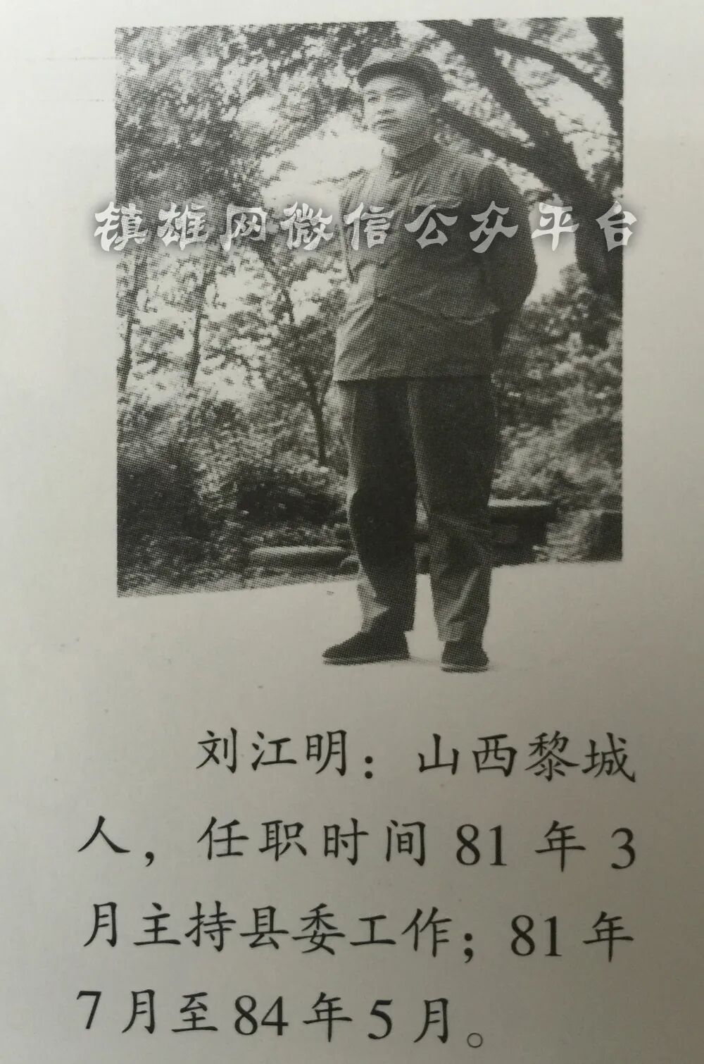 刘江明:山西黎城人,1981年3月至6月任县委副书记主持县委工作,1981年7月至1984年5月任书记。