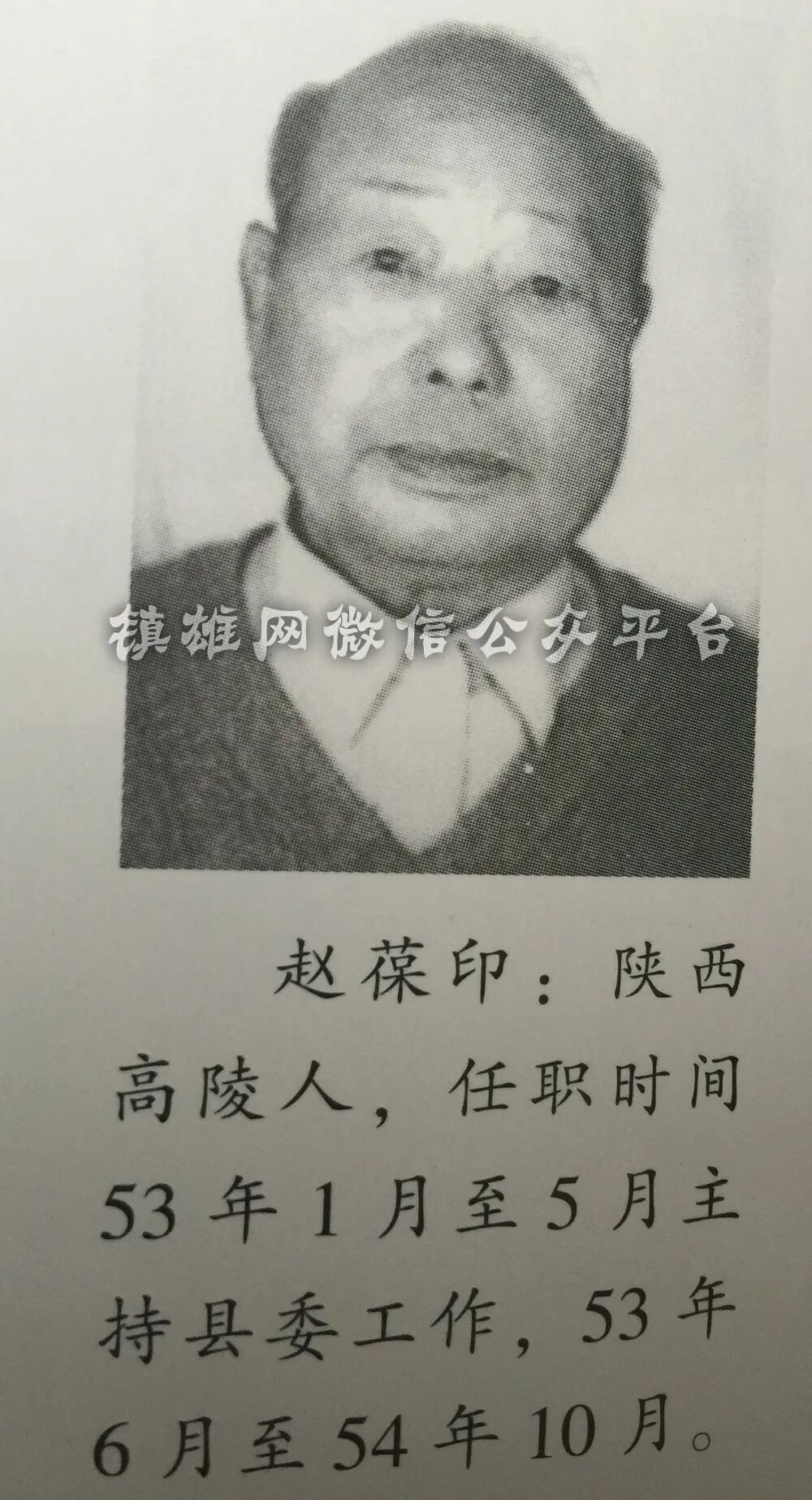 赵葆印:陕西高陵人,1953年1月至1953年5月主持县委工作,1953年6月至1954年10月任书记。