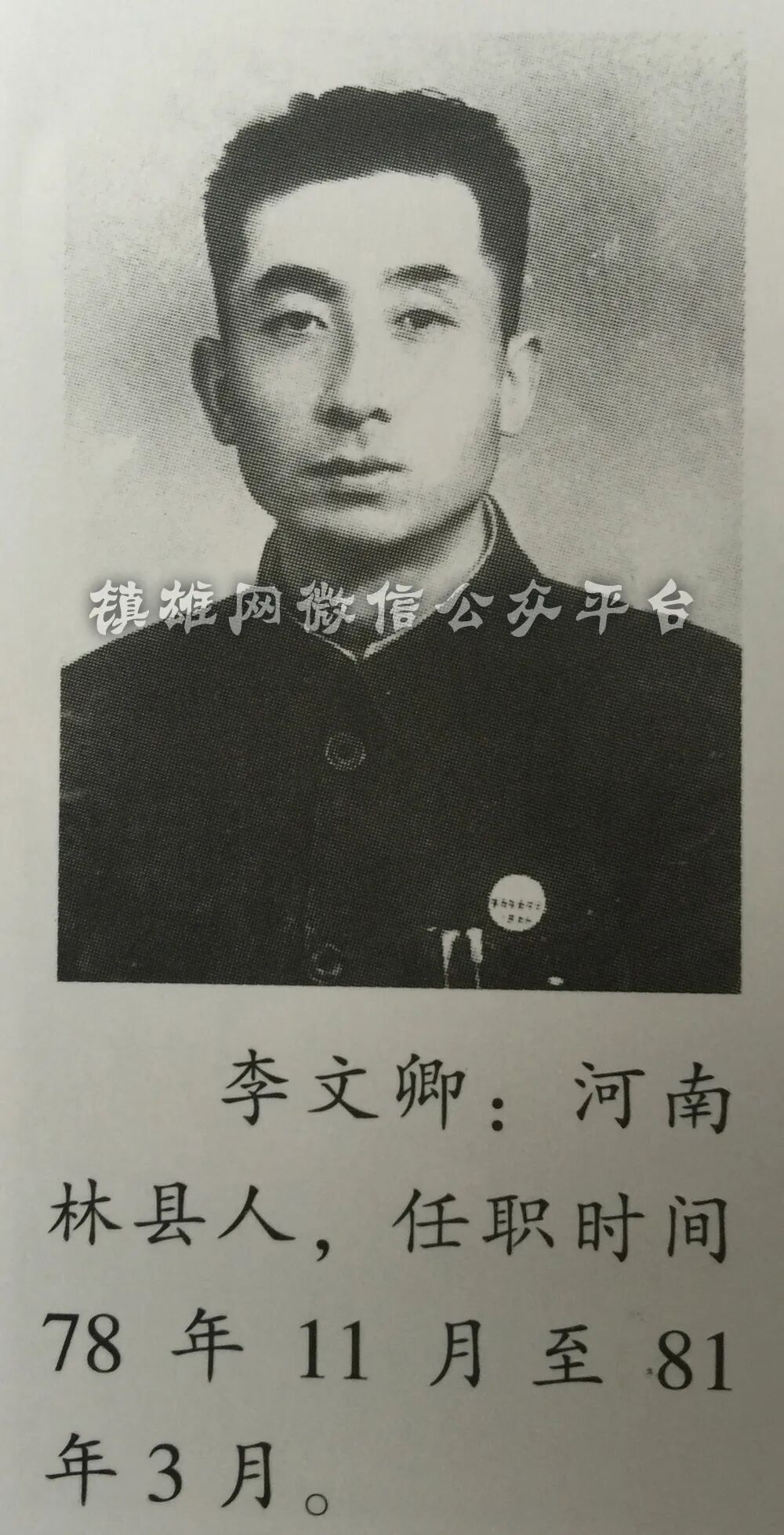 李文卿:河南林县人,1978年11月至1981年3月任书记。