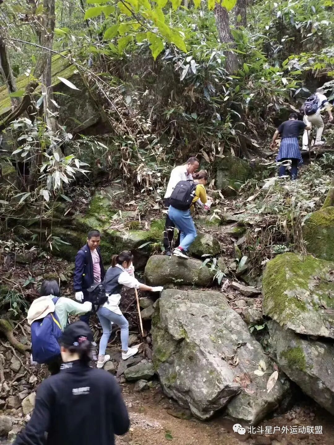 登铁匠山沿溪径而上瀑布奏鸣溪水为伴,林间小道时平时坎。两边森林茂密,尤其是铁匠山的中段:天然葱幽的树林,有意、无意间停放着许多巨石,有的石头上可以休息几十人!石头下是清凉的山泉!难怪有人说,有山就有石,有石就有洞,有洞就有水!铁匠峰海拔1280米,是皖南最高峰之一,