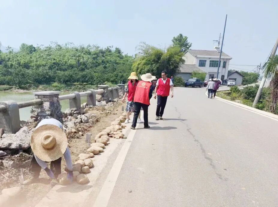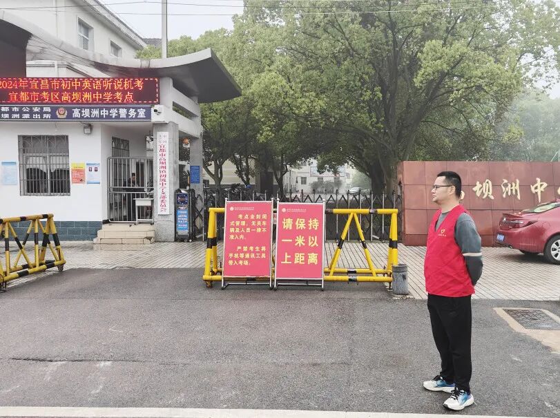中坪村居村组干部在镇初级中学周边开展巡逻劝导,为考生创造良好的考试环境。