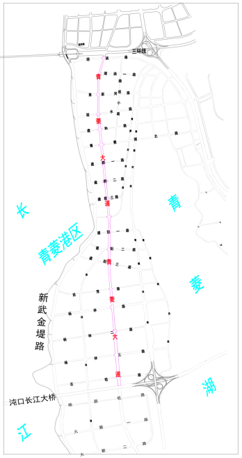 南郊路更名为青菱大道区域示意图。