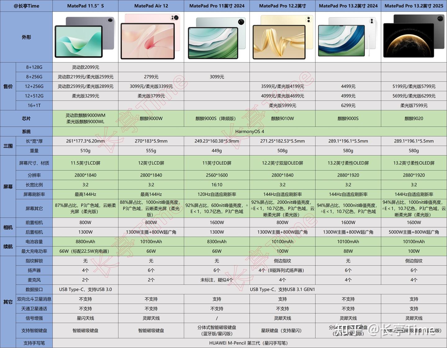 PS:目前MatePad Paper和MateBook两个产品线暂时停更。 华为平板在各个价格段、各个尺寸都有产品可选,可以根据需求和预算来做选择,并不存在哪款平板更值得购买。