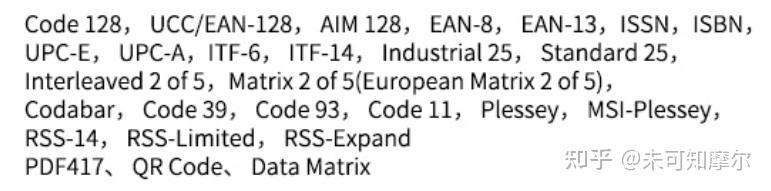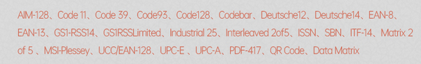 可识别25种海量码种:22种一维码+ 3种二维码,并且能够识别模糊码: 6种一维码+ 5种二维码。