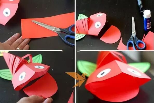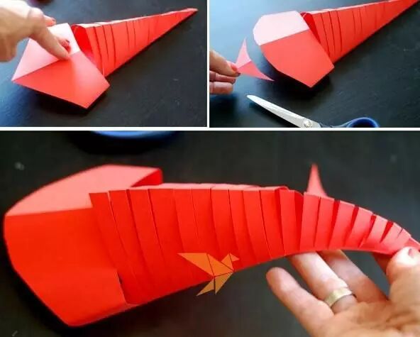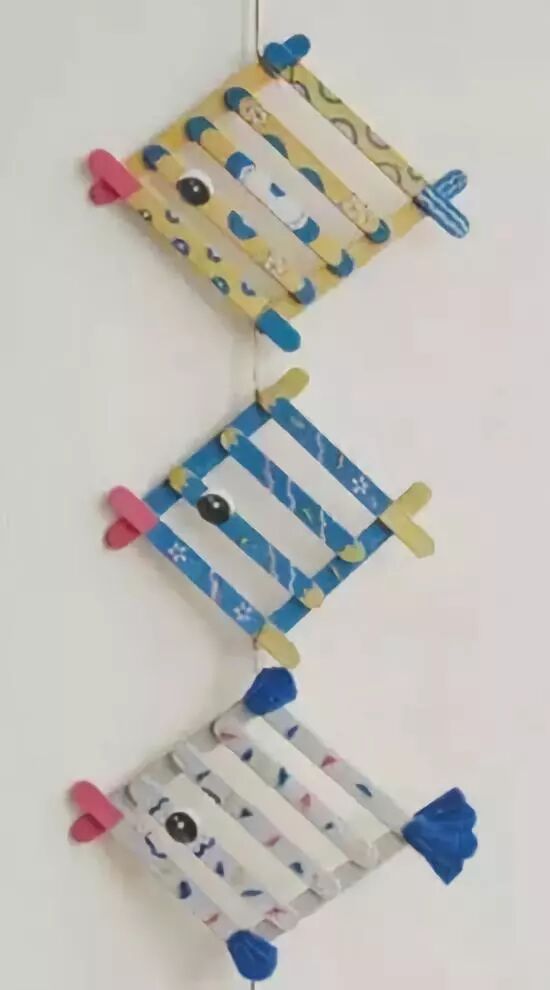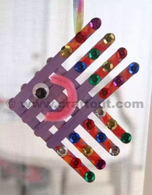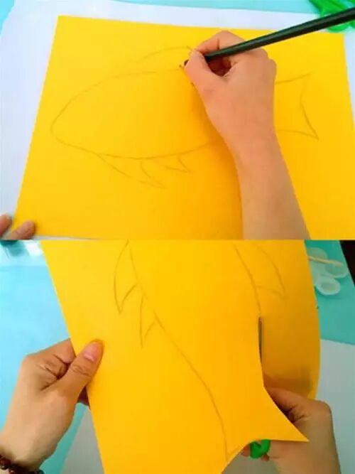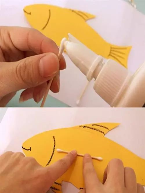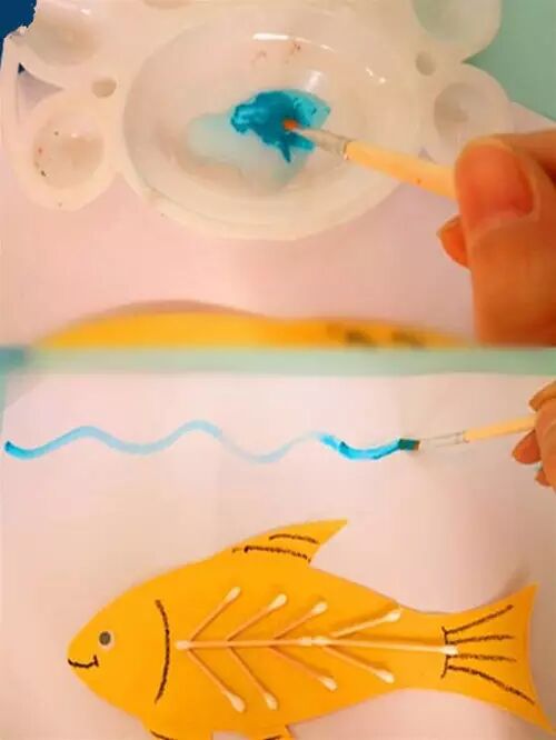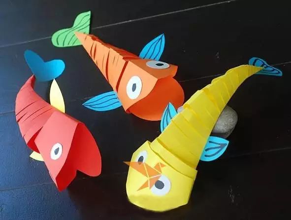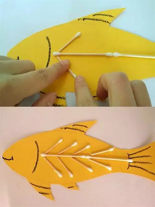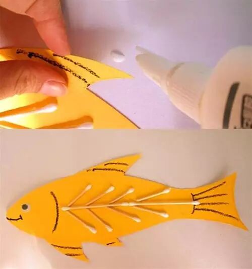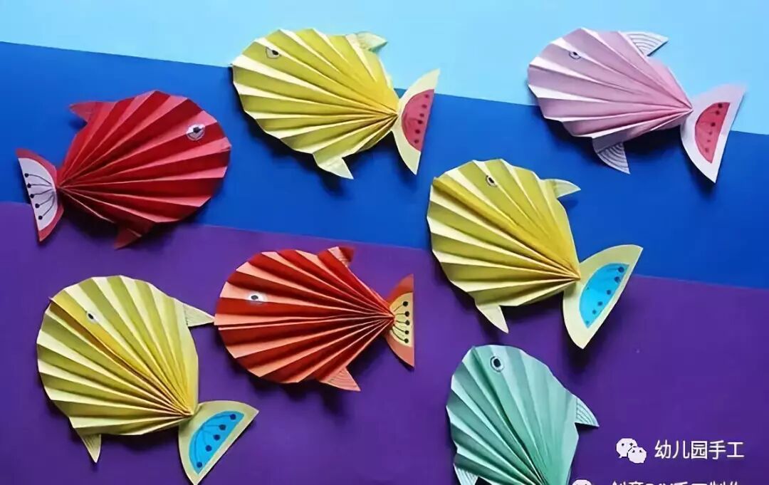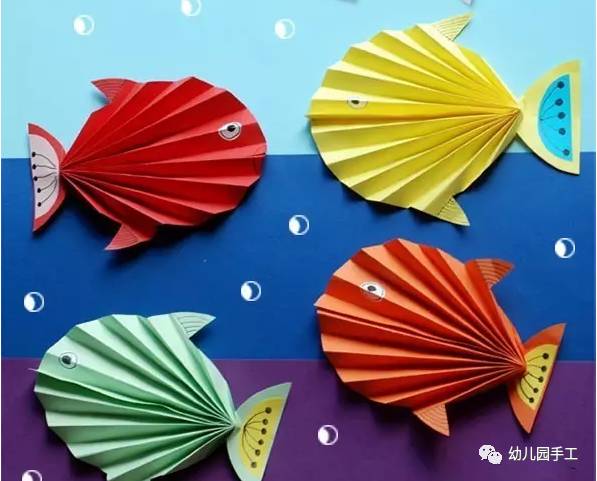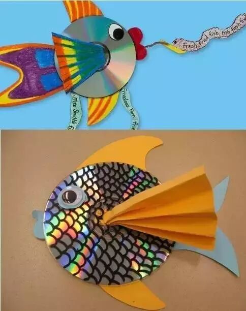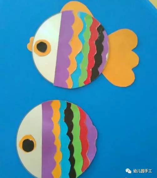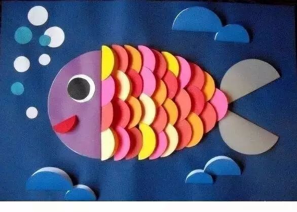 小朋友们制作的手工通常都比较简单,但是也有很多是设计上很精巧的,像是下面的这几款手工小鱼,手工吊饰,是可以拿在手里动来动去的哟,小朋友们都很喜欢这种能动的手工作品,在制作的时候需要用到剪刀,大家要注意,小心使用,不要伤到自己和其他小伙伴啦。 卡纸棉签小黄鱼 准备材料:蜡笔、彩笔、铅笔、画笔、水粉、水杯、调色盘、活动眼睛、黄白两色卡纸、剪刀、棉签、白乳胶。 制作步骤:用铅笔画出小鱼的轮廓并用剪刀剪下来。 给小鱼添画上漂亮的花纹。你将棉签变成小鱼的骨头,想画成什么样的呢?发挥你的想象力吧! 将棉签变成小鱼的骨头。 将棉签从中间轻轻折断,然后依次排开并用白乳胶固定,做出一整副鱼骨。 为小鱼贴上圆溜溜的小眼睛,让它活灵活现吧! 用白乳胶将小鱼固定在白色卡纸上。 用水调和水粉颜料,为小鱼画个漂亮的大海吧!你的大海是什么颜色的呢? 奇妙的小鱼做好啦,让它在大海里开心地游一游吧! 剪纸立体胖头鱼 然后下面就按照前面的折痕来折叠起来,用剪刀将教程中标出的部分剪开,再用胶水粘好 将前面的部分压折 然后用其它颜色的纸张剪成鱼的眼睛和鱼鳍的部分 下面用水彩笔画上眼睛和鱼鳍上面的花纹 这样就做好这些剪纸小鱼了,小朋友们把鱼头的部分拿在手里晃动,就会看到小鱼开始游了哟 折叠扇子小彩鱼 这是一款非常有趣的折叠彩色小鱼教程,制作方法很简单,可以把折叠的小鱼组合粘贴成一幅创意画哦。 准备材料:彩纸、剪刀、彩笔、固体胶 制作步骤:先剪出小鱼的形状 按照下图所示折叠鱼身 光盘鱼吊饰 准备材料:准备卡纸、剪刀、双面胶、光碟两个。 制作步骤:选择自己喜欢颜色的卡纸剪成波浪条。(注意:只是一面是波浪形) 用双面胶把波浪条粘贴在一起。 在用双面胶粘贴在光碟上。(注意:要粘贴在就像镜子的这一面) 粘贴上去后沿着光碟边上把多余的卡纸剪掉。 用一张自己喜欢的卡纸和一张黑色的卡纸剪出两个小圆点。(注意:黑色的要小一点) 用双面胶把两个圆点粘贴在一起。(注意:黑色的圆点要在上面) 用自己喜欢的颜色的卡纸剪出鱼的尾巴。 用双面胶站在光盘上。 用一张和尾巴一样颜色的卡纸剪出鱼的鲫。 用双面胶粘贴在光盘上。 用自己喜欢的卡纸剪出一个小小的嘴巴。 用同样的方法拿另一个光盘做出同样的小鱼。(注意:制作眼睛和鱼鳞) 拿毛线用双面胶粘贴在光碟的背面。(注意:毛线要粘在鱼鲫的方向)完成咯 卡纸拼贴鱼 准备材料:彩纸, 制作步骤:直接回家对折再拼装就可以啦。 折纸小鱼儿 用一张彩纸就可以完成的小鱼,教程如下,超超超简单!快快带孩子一起玩起来吧。 最后可以让孩子们自己发挥给小鱼画上漂亮的花纹和图案哦。 各种创意鱼儿手工作品 吸管做的彩色鱼骨,可以给孩子提前打好洞,中间的一根骨头可以用更细的吸管,也可以用线穿,会有不同的效果。 贴纸(适合小班):引导幼儿观察物体,找出物体的突出特征,练习粘贴、揉先准备好各种类型的鳞片(半圆片的、球形的、三角的等),安全起见鱼眼可以让孩子用彩泥揉。 7、布类 与毛线结合(适合小班):练习简单缠绕 老师需要教孩子们简单的缠绕方法,孩子完成后可以用作装饰,也可以作为玩具放在区域里。 觉得本文不错的话,请在文末右下角【点赞】支持,点亮【在看】,转发【分享】哟,教育路上,我们与您并肩同行。![]()