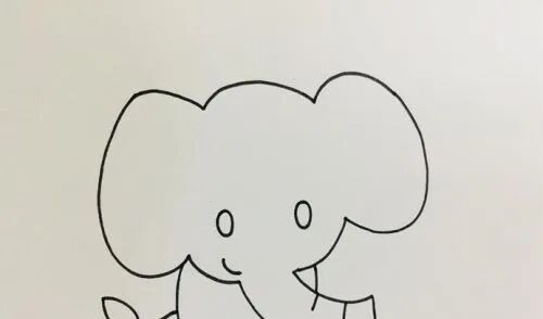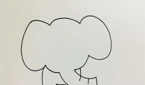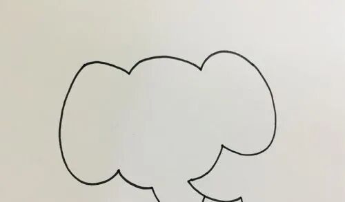 1.最先画出小象头顶部的轮廊,一个大脑袋和两个大大的耳朵。