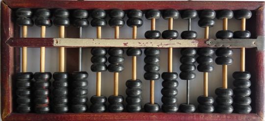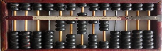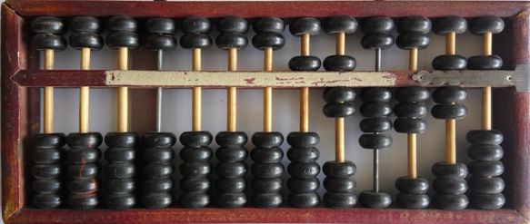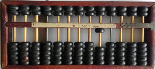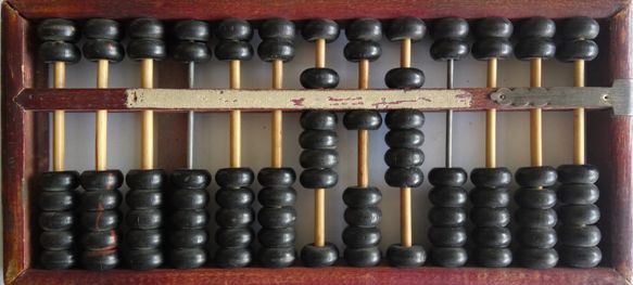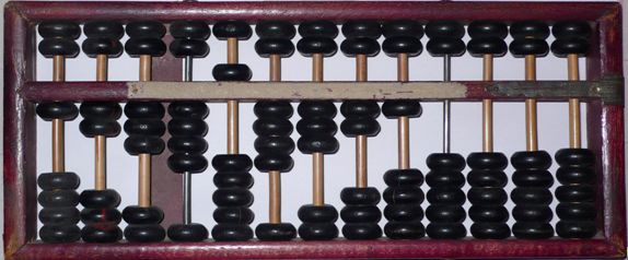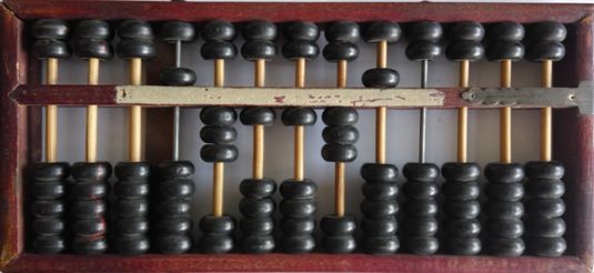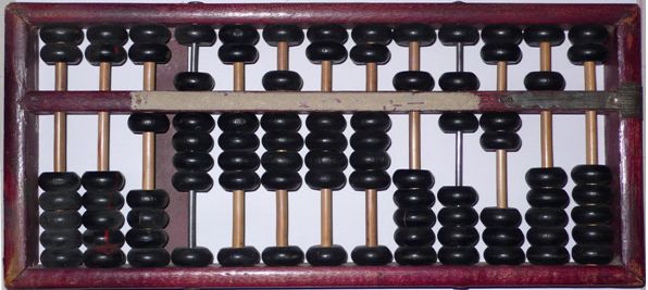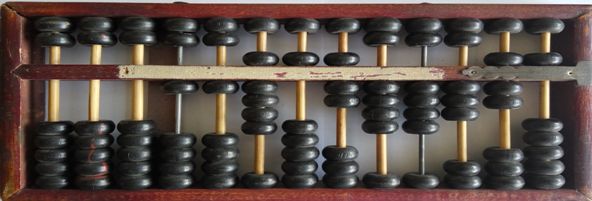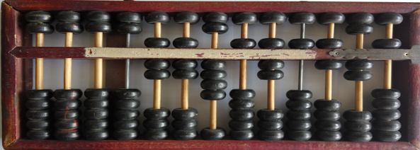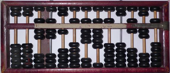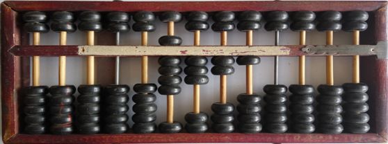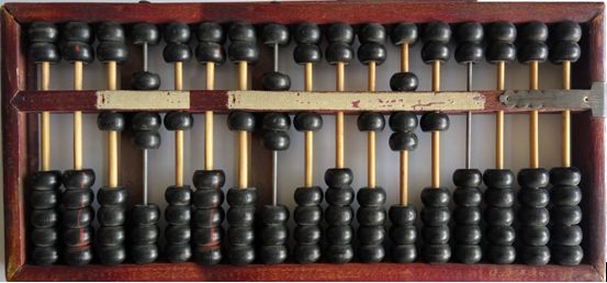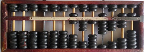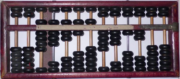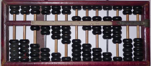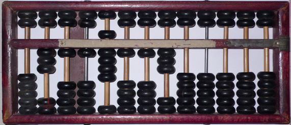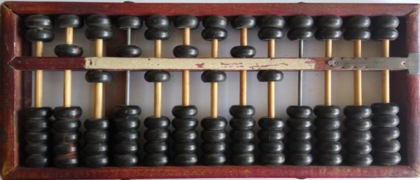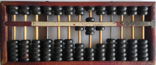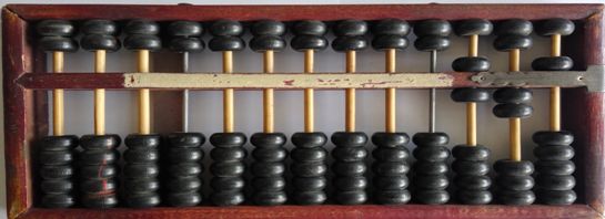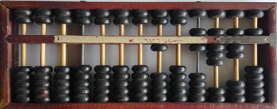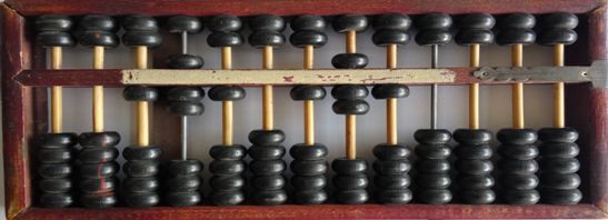 人们都知道,珠算是以算盘为工具进行数字计算的一种方法。“珠算”一词,最早见于汉代徐岳所撰《数术记遗》, “珠算,控带四时,经纬三才。”北周甄鸾为此作注,大意是﹕把木板刻为三部分,上下两部分用于停游珠,中间一部分用作定位。每位各有五颗珠,上面一颗珠与下面四颗珠用颜色来区别。