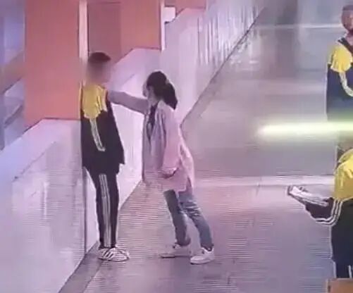 没有过多的听儿子一句解释,情绪失控的母亲就这样当着众多师生的面,在五楼的走廊里,先是狠狠的扇了自己儿子两个耳光。