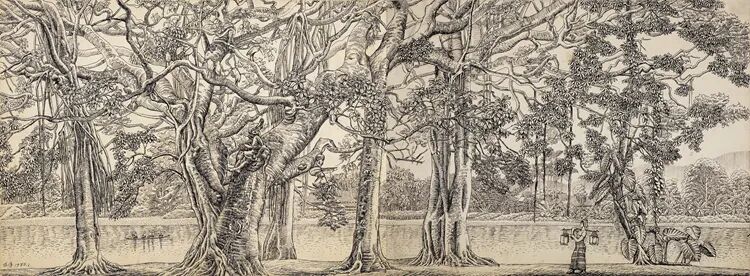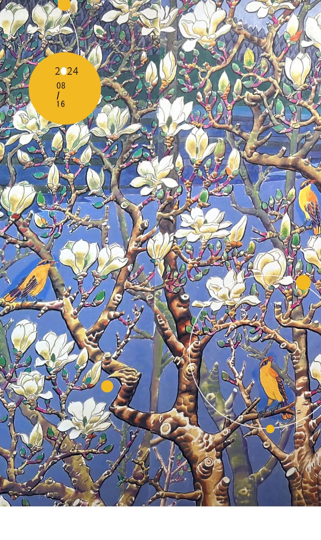 1952年,由国家轻工业部召开的第一次业务性会议上确定了新中国应该有自己的国宴瓷、国礼瓷。经过层层选拔,最终由周恩来总理同专家们一起将祝大年设计的青花斗彩缠枝牡丹纹中餐具和青花海棠纹西餐具确定为国宴餐具样本。祝大年的钢笔画大多完成于室外,充满情感。在河北工作期间,他画了很多农村主题的钢笔素描,作为中国钢笔画的开拓者,祝大年不仅开启了一个新的绘画门类,还让写生的价值在中国传统工笔重彩画中发扬光大。在钢笔写生的基础上,祝大年的工笔重彩画侧重色彩、用笔、用线、提炼、上色,更加富于诗情画意,实现了既有意境又有装饰性的效果,充分发挥了中国传统绘画矿物质颜料之美,以及工笔重彩形式之美。祝大年是“新中国早期壁画”的先行者,他创作的壁画种类涵盖陶瓷、马赛克、浮雕、工笔重彩、丙烯等,代表作有《森林之歌》《玉兰花开》《鸢飞曲》等。他的壁画创作实践开启了中国公共艺术的新篇章,成为改革开放的先声。
