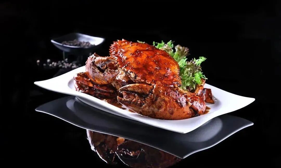 细腻的蟹肉与黑胡椒酱搭配