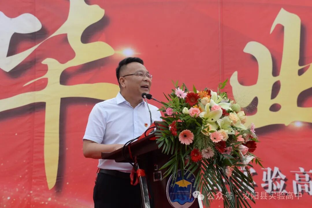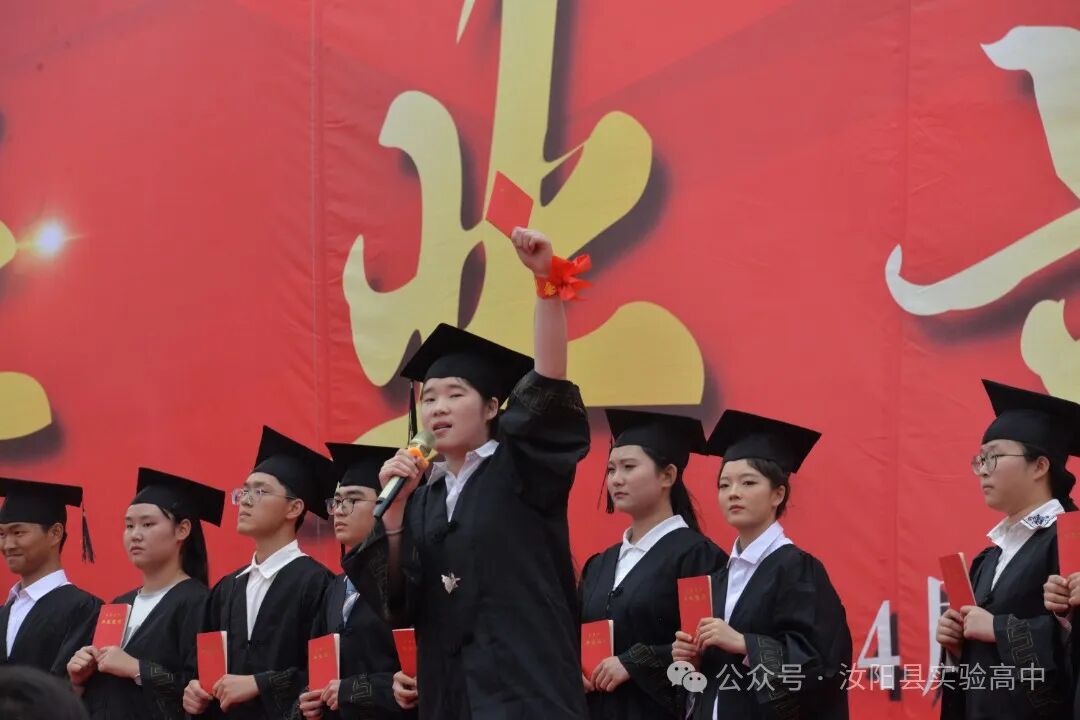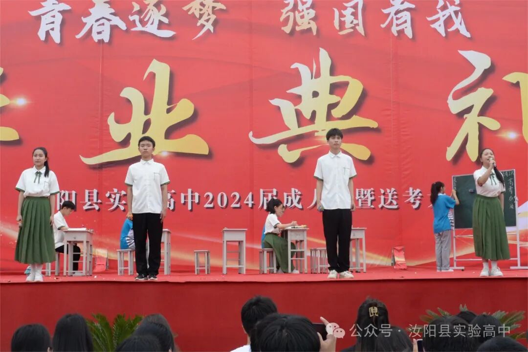青春逐梦,强国有我! 三年征途,千个日夜, 2024届实高学子怀揣梦想,披荆斩棘, 跨越了人生旅途中的一个重要阶段,迎来了高中毕业。 笃行不怠,矢志不渝, 这里正演绎着责任与担当、青春与未来的风云激荡。 2024年6月4日上午,汝阳县实验高中2024届毕业典礼暨送考大会在中和楼广场隆重举行,全体高三毕业生心怀梦想,踏着青春的步伐,走过成才门,一步步走向理想的彼岸! 意气风发,昂首阔步。在六月这收获的季节里,汝阳县实验高中2024届同学们即将迎来自己的18岁成人礼。我校党支部书记、校长何刚强带领领导班子打开成才门,共同迎接学子踏上成才路。 三年实高人,一生实高魂!实验高中三年的时光美好又弥足珍贵,因为这里有实高学子最珍贵的青春回忆。代表胜利的战旗在校长和班主任的手中传递,预示着我们必将从胜利走向新的胜利! 高三学子踏上征程,何校长也在会上送上了祝福和叮咛!何校长对全体高三学子表达期许,期望实高学子心要静,手要准,坚强些,在考场上,不仅能够稳定心态,以智慧和勇气书写辉煌,也能心怀家国,担当有为,不负时代,不负韶华,用实际行动践行自己的理想,为中华民族的伟大复兴贡献青春力量。 那年,微风拂过, 一步步踏入实高的校园大门, 青春开始撰写篇章。 上学路上父母的叮咛, 课堂上老师的教诲, 走廊上同学们的嬉笑打闹, 都成为青春里最难忘的记忆 毕业季,离别季;我们就要离开了,离开亲爱的老师。可爱的实高,还没离开就已经开始想念!师生一场,起始于盛夏,一路生花。你们的背后有老师,有实高,我们一直与你同在!陈玉玲老师、赵雅舒同学以及高三各学科代表老师为高三学子加油鼓劲。 从青涩少年到成年人的完美蜕变,父母陪伴我们走完了人生的第一步。此次典礼,高三家长代表——三18班陈畅同学的父亲陈向峰先生 也对高三学子送来了祝福。 以文化人,以美育人,为学生创造每一个展现自我的舞台。有生气、冒热气,青春活力的实高学子,正是我校素质教育的完整体现。舞蹈社团、篮球队、武术社团为大家带来了优秀的文体节目。 毕业有着难舍的离别,毕业满载成熟的喜悦!24位毕业生代表郑重地从何校长手中接过毕业证书,并带领全体高三学生郑重宣誓。 全体高三毕业生宣誓:紧张有序,高效自律;相信自己,我有潜力;风雨同舟,苦乐共济;顽强拼搏,奋战到底;相信自己,创造奇迹。 生于华夏葳蕤蓬勃的时代, 吾辈当如鲲鹏展翅扶摇直上, 纵万云飞渡仍不改从容! 青春生生不息,奋斗未有穷期。 洒汗水,让理想开花结果; 献青春,为祖国耀新增辉! 百年奋斗,薪火相传; 青春逐梦,强国有我! 衷心祝愿亲爱的高三同学, 愿你高考提笔征战四方, 愿你合笔风轻无恙! 实高加油,高考必胜! - 本文由大汝网编辑整理 - - 部分信息来源:汝阳县实验高中等 - - 掌上汝阳小编 - 商务微信:Ry0379![]()