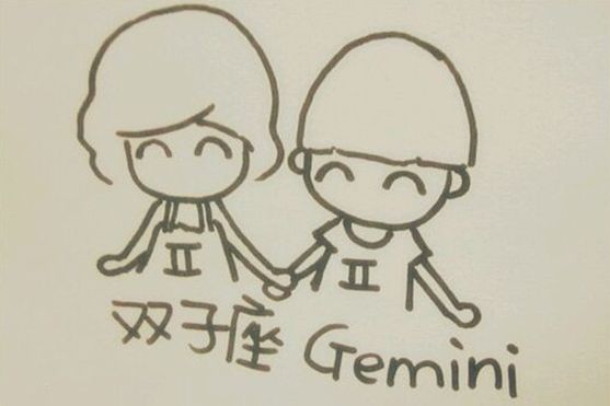 双子座(5月21日-6月21日):双子是一个男孩一个女孩,两个可爱的孩子手拉着手。双子座性格俏皮机智,富有创意,脑海中有无数的点子,经常有灵光一闪的时候。