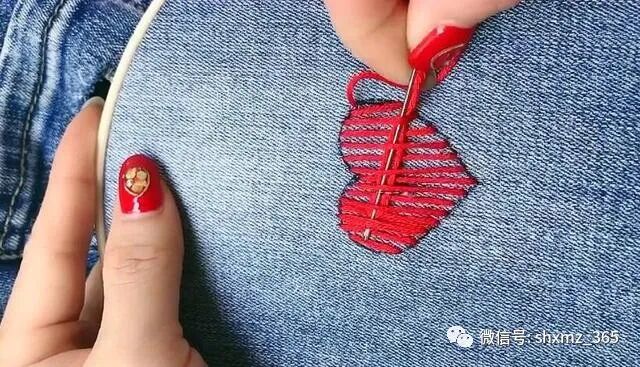 衣服破了一个洞不要随意丢弃,运用下面几个缝补小技巧轻松让衣服美观又好看,女生们干净来学习吧!衣服上的破洞最简单的方法莫过于用针线缝补了,根据自己对于颜色和图案喜爱,可以改变多种搭配方案,今天我们以红黑线和心形图案为例,介绍一下缝补的操作技巧。 简单又好看的图案