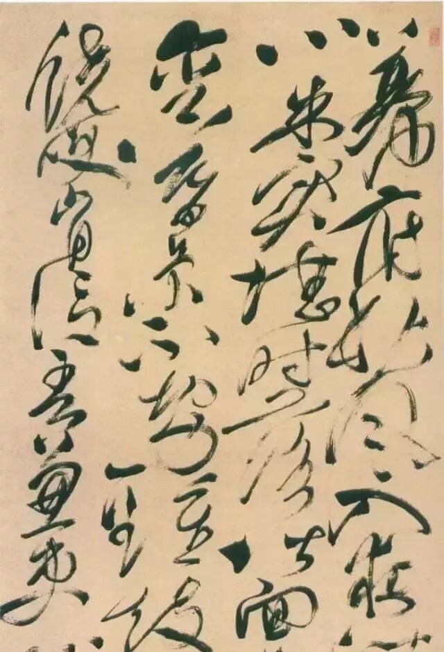 晋人写大草主要是王献之,到唐代又出现了张旭、怀素这样的狂草。王羲之小草中的某些折的线条象楷书一样完整,而王献之变其父内恹的笔法为外拓,将线条写的旋转、飞动起来。他的草书有的地方处理靠牵丝连带,还有一些地方连带的很少或几乎没有连带,但是草势特别强烈,张力非常突出,靠的是字与字空间的理解与分割,线条既厚重又开张。这种不连带而草性飞扬的特点,对于我们学习草书是一个很好的启示,写草书要能不连而草,凝重而又飞动,这些特色要表现出来。史孝山《出师颂》