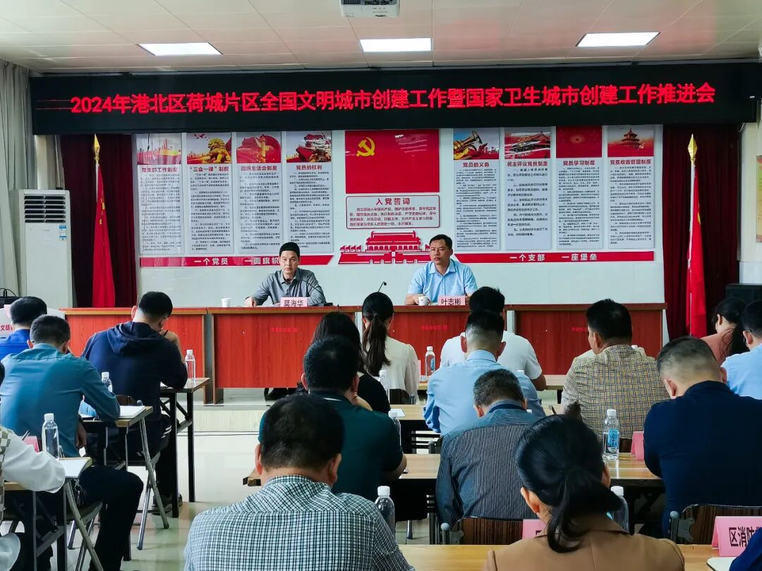 3月25日上午,港北区荷城街道召开全国文明城市创建工作暨国家卫生城市创建工作推进会,听取当前创城工作汇报,研究部署下一步创建工作。港北区委常委、组织部部长莫海华,市级包联单位负责同志等参加会议。