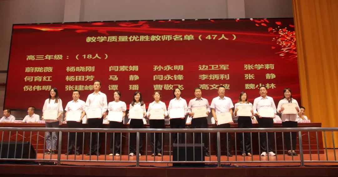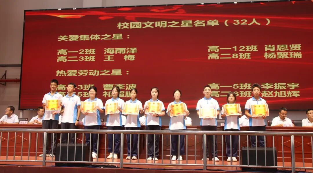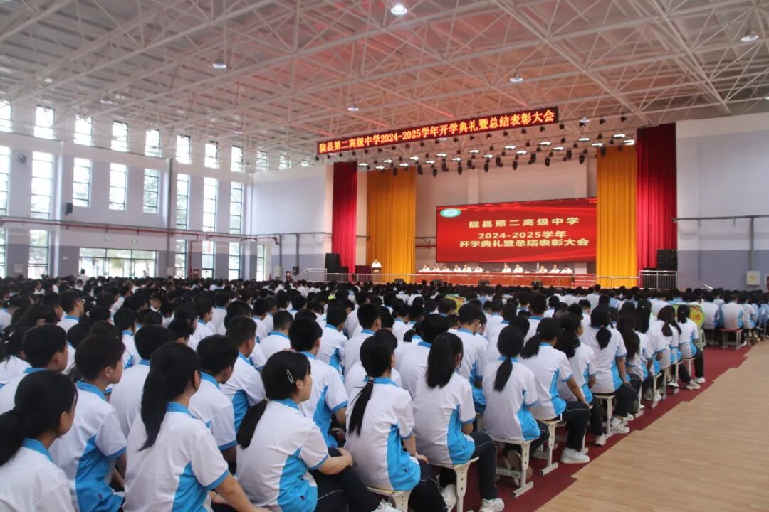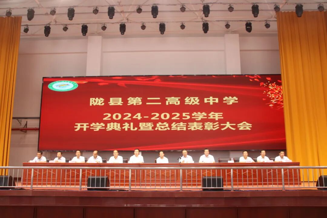 一天秋色暑气收,最美清秋奋斗时。9月6日下午,陇县第二高级中学在文体中心隆重召开2024—2025学年开学典礼暨总结表彰大会。典礼在庄严的国歌声中拉开了序幕,校长郝抓定作了题为《凝心聚力 接续奋斗 努力把我校办成老百姓家门口的优质高中》的讲话。大会由学校党总支书记张剑中主持。 征程万里风正劲,重任千钧再奋蹄。郝校长阐述了学校新学年的整体工作思路及任务。郝校长强调,在成绩面前,我们学校只有摒弃单纯延长时间,重复训练的培训机构功利短视意识,树立起为党育人、为国育才的办学目标;我们老师只有摒弃只教书不育人的错误观念,树立起争做既教书更育人的“大先生”意识;我们学生只有摒弃唯分数唯名次的片面认识,树立起既学习更学做人的成长观,我们才能真正走在办老百姓家门口的优质高中的正道上。成绩属于过去,已载入我校发展的史册,新的征程已经开启,我们任重而道远。一是在办老百姓家门口优质高中的道路上再迈大步伐。二是深化德育工作内涵,做强三大德育品牌。三是加大教学教研改革力度,夯实“三个精准”,再攀教学质量新高峰。四是五育并举,促进学生全面发展。五是加大安全工作力度,筑牢校园安全防线。 新学年,新起点,新征程,新作为。郝校长向全校师生提出了殷切希望,希望第二高中学子确立宏伟志向,根植家国情怀;坚持勤学不缀,锤炼坚韧意志;恪守严于律己,养成良好习惯。希望全校教师,做既能教书更能育人的大先生;做以高尚师德引领学生成长的引路人;做学校发展的推动者 。 星光不问赶路人,历史属于奋进者。开学典礼上,闫宇强、王锁成、李文利三位副校长分别宣读了德育政教、教学教研、总务后勤表彰决定。学校对2023-2024学年第二学期在德育政教、全员育人、教学教研、行管教辅、师德师风等方面做出突出贡献的优秀班主任、全员育人先进个人、教学质量优胜教师、优秀行管教辅人员、师德先进个人、优秀生活指导老师等共计107人次进行了表彰奖励;对三好学生、学习标兵、学习优秀生、学习进步生、优秀班干部、优秀舍员等共计519人次进行了表彰奖励;对优秀班集体、文明宿舍等58个先进集体进行了表彰奖励。 教师代表张梅、刘利军,学生代表高三(9 )班冯美卿、高一(15)班张鹏辉作了表态发言。大会尾声,我校教师诵读团为开学典礼送上精彩的诵读节目《师者匠心》。大会在全体师生齐唱校歌《同心协力创辉煌》的嘹亮歌声中落下帷幕。 蓝图已绘就,自当奋楫逐浪;重任已在肩,更须快马加鞭。新的学年承载新的梦想,新的学期开启新的希望。我校全体师生将在这个充满机遇与挑战的新征程上,奋楫逐浪,勇毅前行,凝心聚力,开拓创新,为把我校办成老百姓家门口的优质高中而砥砺前行、努力奋斗! 崇德 博学 求真 进取