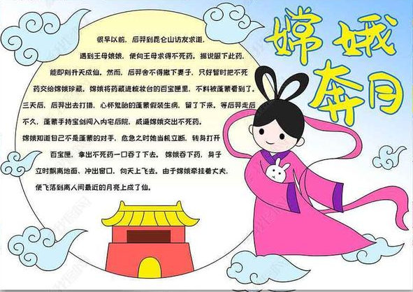 嫦娥奔月是中国上古时代神话传说,讲述嫦娥偷吃仙药飞上月球,从此与丈夫羿天地相隔的故事。中秋节这个中国传统节日便是从嫦娥奔月这则民间传说而来。