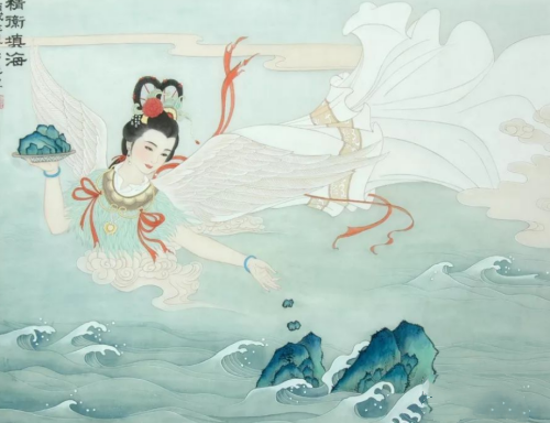 女娲补天是中国上古神话传说之一,讲述的是女娲时代,因为水神共工氏和火神祝融氏,在不周山大战,结果共工氏因为大败而怒撞不周山导致天塌陷,造成女娲用五彩石补天的故事