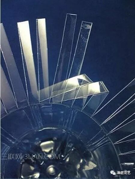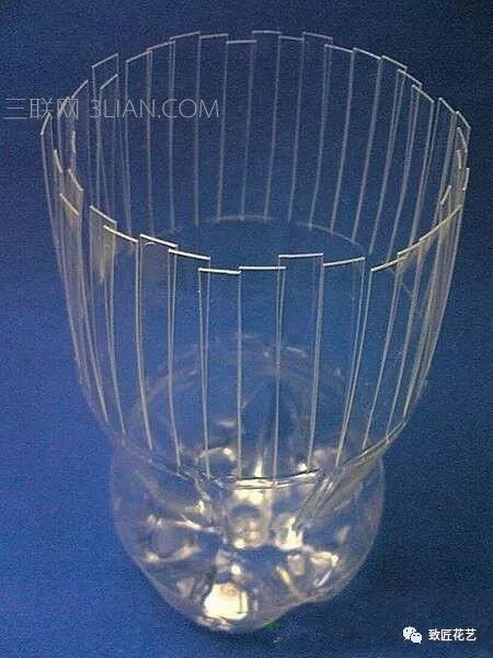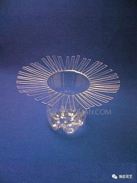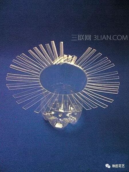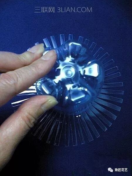 8、将瓶身朝下扣,让剪出的细条全部展开。