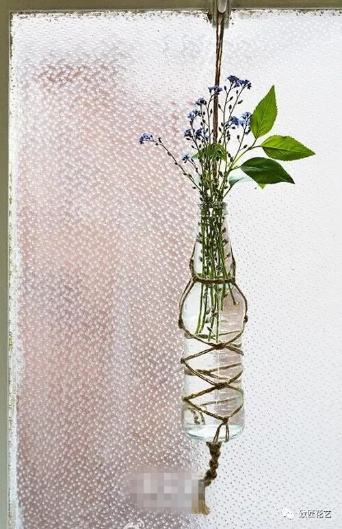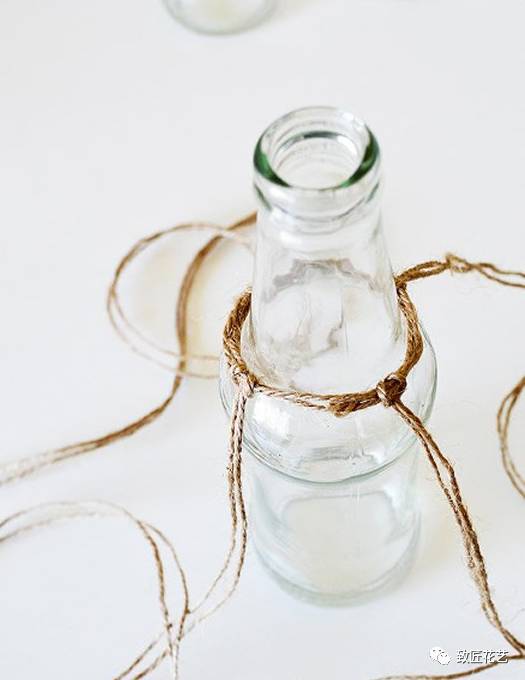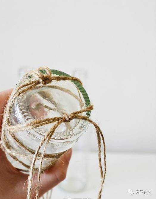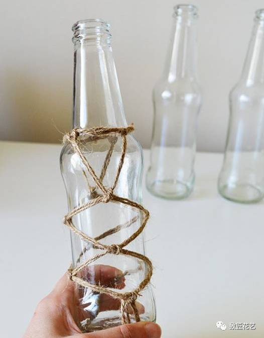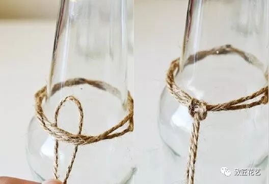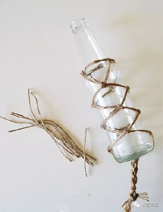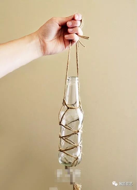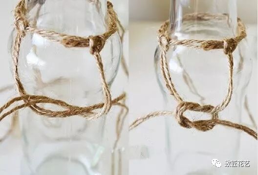 第四种:用麻绳和玻璃瓶制作花瓶 手工垂吊花瓶的绑法