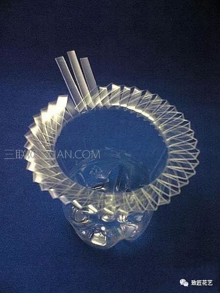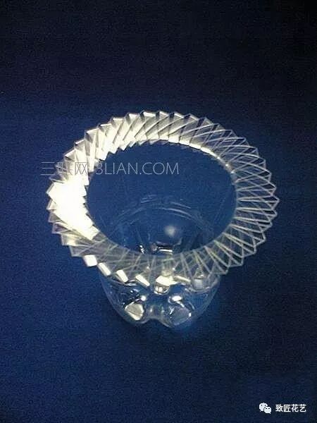 饮料瓶制作花瓶绑好瓶子后,还要在瓶底留个小辫子。