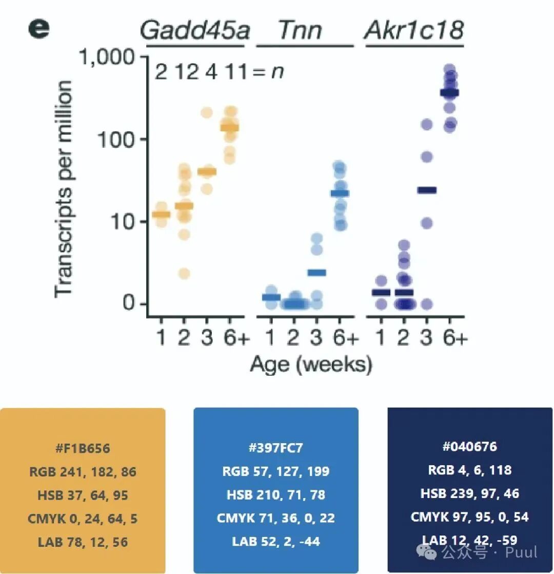 截至目前,nature共发表Article 572篇,本文挑选了部分最新的文献,进行配色总结,每种颜色分别提供十六进制、RGB、HSB、CMYK和LAB5种描述模型,方便后期配色使用。