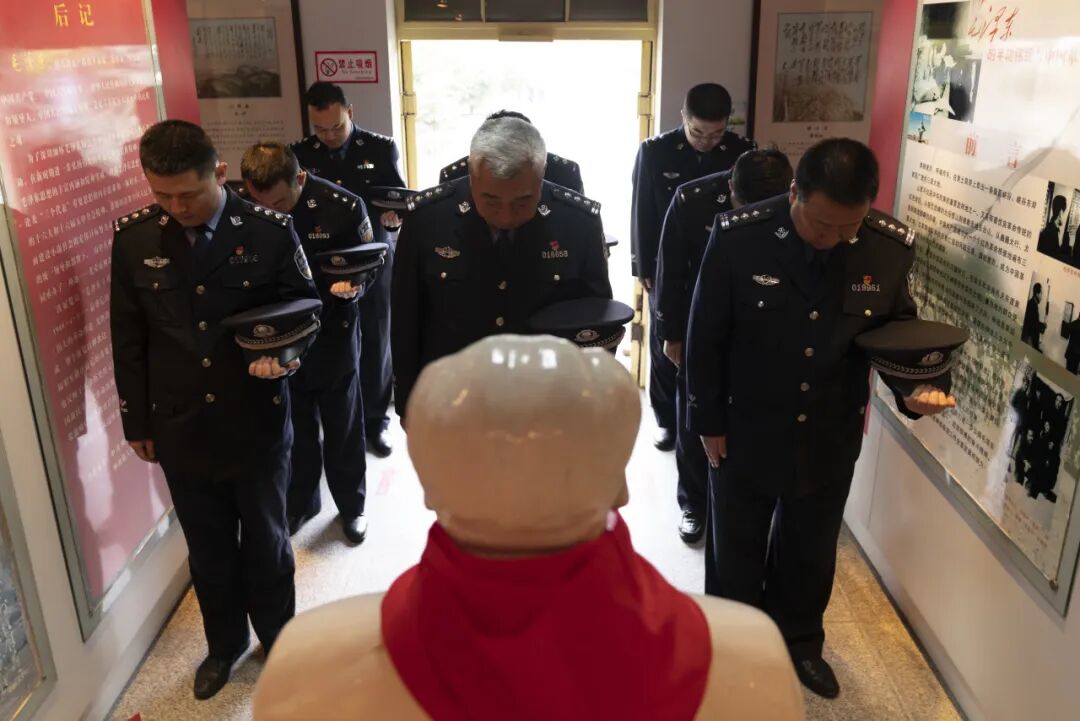 为进一步加强全体民警忠诚教育,传承人民公安革命传统,激励全警为以中国式现代化全面推进强国建设、民族复兴伟业贡献更大公安力量。10月18日,神池南站派出所党支部和原平南站派出所党支部在神池县毛主席路居纪念馆联合开展“人民公安从这里走来”主题党日活动。 重温入党誓词 筑牢忠诚警魂 党员民警重温入党誓词 入党誓词是行动指南,是共产党人的座右铭,不断重温,终身践行,前进路上,对照承诺,时时检视自我,不断校正航向,方能行稳致远,不断重温的意义,正在于此。 活动伊始,在神池南站派出所党支部书记张黎明同志的带领下,全体党员民警一起高举右手,面对鲜红的党旗,再次庄严宣誓。铿锵恢宏的誓词,强烈震撼着在场的每一位党员民警,一字一句,神圣而豪迈,铮铮誓言,体现了全体党员民警对中国共产党的无限忠诚,坚定了入党使命,奋斗初心。 参观领袖故居 追忆峥嵘岁月 工作人员为参观民警进行讲解 1948年4月5日,毛泽东、周恩来、任弼时率领中共中央前委机关在离开陕北向河北平山县西柏坡转进途中,在神池县委机关驻地院内留宿一晚,期间中共中央前委听取了时任中共雁门区宣传部长、神池县土改工作团团长郑林同志关于神池县土改、整党、支前和生产自救工作情况的汇报并作重要指示。1968年神池县把毛主席和中央领导居住过的这个院子保护起来,供人们瞻仰。2019年4月山西省委办公厅、省政府办公厅将神池县毛主席路居纪念馆确立为省级爱国主义教育基地。 在纪念馆工作人员的讲解下,全体党员民警参观了毛泽东路居纪念室、周恩来任弼时路居纪念室、毛主席丰功伟绩展厅、神池县历史文化民俗展厅、国防科技发展成果展厅。大家仔细观看珍贵文物、历史图片及文献资料,了解展品所蕴含的历史意义,共同追忆老一辈革命家的峥嵘岁月,接受思想的再洗礼、初心的再觉醒、忠诚的再淬炼、使命的再升华。 民警观看历史照片 民警参观毛泽东路居纪念室 民警参观周恩来任弼时路居纪念室 民警参观毛主席丰功伟绩展厅 民警参观毛主席丰功伟绩展厅 民警参观神池县历史文化民俗展厅 民警参观国防科技发展成果展厅 民警参观国防科技发展成果展厅 民警参观国防科技发展成果展厅 瞻仰伟人雕塑 汲取奋进力量 全体民警向毛泽东同志雕塑鞠躬缅怀 习近平总书记在纪念毛泽东同志诞辰130周年座谈会时指出:毛泽东同志把自己的一生献给党和人民,留下了永志后人的崇高精神风范。毛泽东同志展现出一个伟大革命领袖高瞻远瞩的政治远见、坚定不移的革命信念、勇于开拓的非凡魄力、炉火纯青的斗争艺术、杰出高超的领导才能、心系人民的赤子情怀、坦荡宽广的胸怀境界、艰苦奋斗的优良作风,赢得了全党全国各族人民的爱戴和敬仰,毛泽东同志的崇高精神风范永远是激励我们继续前进的强大动力。 在活动的最后,全体党员面对毛泽东同志雕塑深切缅怀。随后,神池南站派出所党支部书记张黎明同志做主题党日活动总结讲话。张黎明同志强调:通过今天的参观学习,让我们两个支部的党员民警更加深刻的认识到了红色政权是怎么来的、新中国是怎么来的、今天的幸福生活是怎么来的。我们要学习传承弘扬好党的优良革命传统,切实把“人民公安从这里走来”主题宣传活动所激发出来的精神力量转化为奋力推进公安工作现代化的昂扬斗志,转化为抓好防风险、保安全、护稳定、促发展各项工作的实际行动,为以中国式现代化全面推进强国建设、民族复兴伟业作出新的更大贡献。 通过开展此次联合主题党日活动,进一步强化了两个派出所党支部民警的忠诚信仰,坚定了民警全心全意为人民服务的入党初心。全体民警将以更饱满的状态、更昂扬的斗志投身工作岗位,全力保障国家能源运输大动脉的安全畅通。 审核:王刚 编辑:张瑾航 素材来源:神池南站派出所、 原平南站派出所![]()