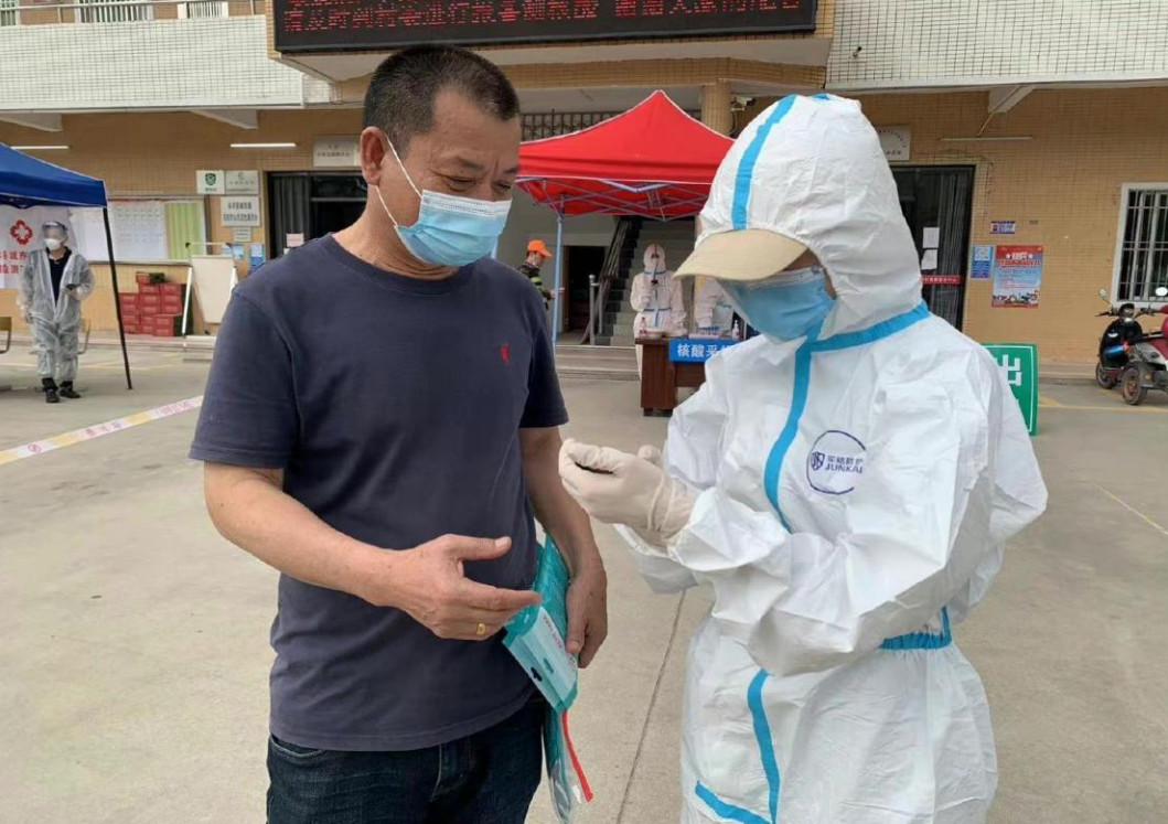 “两委”干部一起投身到核酸检测一线。在核酸检测点,帮助检测群众扫码登记信息,指导群众打开检测核酸的二维码,便于医务人员扫码打疫苗,提高疫苗接种效率。针对不会使用智能手机的老人家和小朋友,我们也准备了手写登记的表格,或用我个人手机帮助登记接种人员信息,并打印纸质版二维码给老人家和小朋友,叮嘱他们不要乱丢,避免多次采集信息,提高效率。经常拿着大喇叭,对照着名单,大声地喊着村民的名字,引导村民十人一组按照顺序排好队,并且再三核对人员,确保检测样本数据无误。这次核酸检测时间紧、任务重,我们必须确保全村人员全部完成核酸检测,我们能做的,就是配合医务人员做好信息登记、秩序维持、后勤保障等工作,我们多付出一点,群众的安全就能多一层保障。