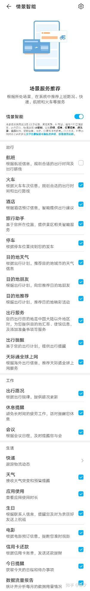 更新一下,评论区很多人说这些功能找不到入口,不知道怎么开启,其实很简单,打开设置,直接在设置里面搜索相关关键字即可。如果搜索不到,可以评论区留言。 MIUI的可玩性更高,感兴趣的朋友以及小米手机用户一定要看看下面这篇回答,你不会失望的: 老华为手机用户这些操作不一定知道下面这些操作,但是知道这些操作的一定是老华为手机用户。 华为官网上对AI信息保护是这样介绍的: 未开启AI信息保护时是这样的: 开启以后是这样的: 开启方法: 经常出国的华为手机用户一定用过天际通功能,出国以后,无需购买当地sim卡即可国外漫游上网,而且上网费用比较便宜。 基本上全球大部分国家和地区都已经覆盖,商务人士必用的功能。 另外,现在的智能手机,一旦连接网络,APP就会自动连接服务器产生流量费用,在国内这个不是问题,如果出国,这就成为问题,因为国际漫游流量费用比较高,为防止出现后台偷跑流量造成高额国际漫游费的问题,可以设置应用的漫游流量黑白名单功能。如下图所示,可以为每个APP设置是否允许漫游时联网,这样就不会产生后台偷跑流量造成高额流量费用的情况了。 ①,截全屏。用单指关节用力连续敲击屏幕两次即可截取整个屏幕。 许多朋友说指关节截屏经常失败,失败的原因就是敲击屏幕时不够用力,不够干脆果断。本人使用此功能,成功率几乎100%,秘诀就在于干脆果断有力。 ②,任意形状截屏。用单指关节用力敲击屏幕后不要抬起,然后绘制任意形状封闭图案即可。 一般的手机只能截取全屏,如果你只想使用其中一部分,你不得不截取全屏,然后再次裁剪,太麻烦,有了这个功能,你只需要截取想用的部分即可,非常方便。 ③,双指关节录屏。用两个指关节连续用力敲击屏幕两下即可开启录屏。 ④,滚动截屏。单指关节用力敲击屏幕画S图案即可滚动截屏。 (补充一下) 华为还有一种截屏方式是三指下滑截屏,在不支持指关节截屏的机型上通常支持“三指下滑截屏”,这种截屏方式也非常方便,不过缺点就是不能任意形状截屏。 开启方式设置~智能辅助~三指下滑截屏 单指关节敲击屏幕并在屏幕中间划线即可开启分屏模式。 单指关节用力敲击屏幕后画字母即可开启相应的APP,要开启的APP可以自由设置。 长按电源键1秒即可开启此功能,此功能应用场景主要是开车的时候,不用低头操作手机即可操作手机,提高行车安全性。 冬季时可以在不摘下手套的情况下操作手机,户外工作的福音。 双指按压屏幕,即可提取文字和图片内容,还可以翻译。 可以手势操作、屏幕内虚拟按键操作、类似于iPhone的单键操作、悬浮球操作,这么多操作方式,总有一款适合你。 华为官方APP,集成于系统内部,更换华为手机时无需另外安装其它换机助手,一键导入旧手机文件到新手机。苹果手机也是可以使用的。 老人机模式,开启此功能,智能手机秒变功能机,方便老人使用 连续快速点击手机版本号即可开启开发者模式,在开发者模式中,你可以设置过渡动画。 现在的双卡手机,实际上是双卡双待单通,也就是一个卡在接打电话时,另一个卡无法使用。开启此功能,一卡来电无法打进来的时候,转移至另一卡。商务人士应该开启此功能。 可以设置流量自动校准,防止跟运营商流量统计方式不同造成流量超标产生额外费用。 可以设置个性化锁屏签名 开启后可以降低蓝光,更好的保护眼睛,我就是长期开的护眼模式 类似于iPhone来信息会亮屏的功能 此功能可以详细记录自启动时间及次数 此功能可以在点击短信发送按钮后6秒内取消发送短信,相当于给你一次后悔的机会 诈骗电话一目了然,此外还可以记录来电响铃时间,防止“响一声”电话诈骗。 华为独家秘方,短信也可以发送图片文件等富媒体信息。 开启此功能短信系统会自动填充短信发送方的logo,例如这样: 或者也可以让短信内容更加直观醒目。如未开启智能短信服务,短信是这样的: 开启智能短信服务后是这样的: 对信息自动整合分类,短信收件箱不再杂乱无章 目前支持微信、QQ,可以开2个QQ,2个微信 自动填写并保存账号密码 可以保护支付类APP,保证交易安全 35,应用锁 此功能类似于小米的手机分身。一台手机可以设置两个不同的空间,每个空间都可以设置独立的指纹和密码,输入不同的指纹和密码进入不同的空间,保护隐私。 手机里面不想被别人知道的小视频.小电影可以放在里面,别人没有密码就无法查看。 安卓手机一定要开启此功能,防止被安装带病毒APP 什么是广告标识符OAID?看下图: 重置OAID后你的手机仍然会接收到广告,但相关性会降低。 生活中会遇到这样的情况,那就是给朋友暂时看一下手机,但是有些人总不自觉乱查看自己手机里面的内容,尤其是照片视频这些私人文件,开启屏幕固定后,屏幕只显示你想要显示的内容,除此以外,其它的都看不到,有效保护隐私。 现在的手机屏幕越来越大,单手模式能够方便单手操作。 可以语音唤醒手机,也可以用来寻找手机,比如忘记手机放哪里了,直接喊一声,手机就会响应你。 睡觉的时候不想被打扰,直接开这个功能就好了 华为手机用户之间打电话不花钱,使用此功能需开启数据连接。 使用入口在这里: 有的私密照片不想被别人看见,可以隐藏这个相册 可以设置手机使用时间,达到使用时间手机不可使用(当然你自己还是能自己解开此限制) 搜索结果会同时显示本机和网