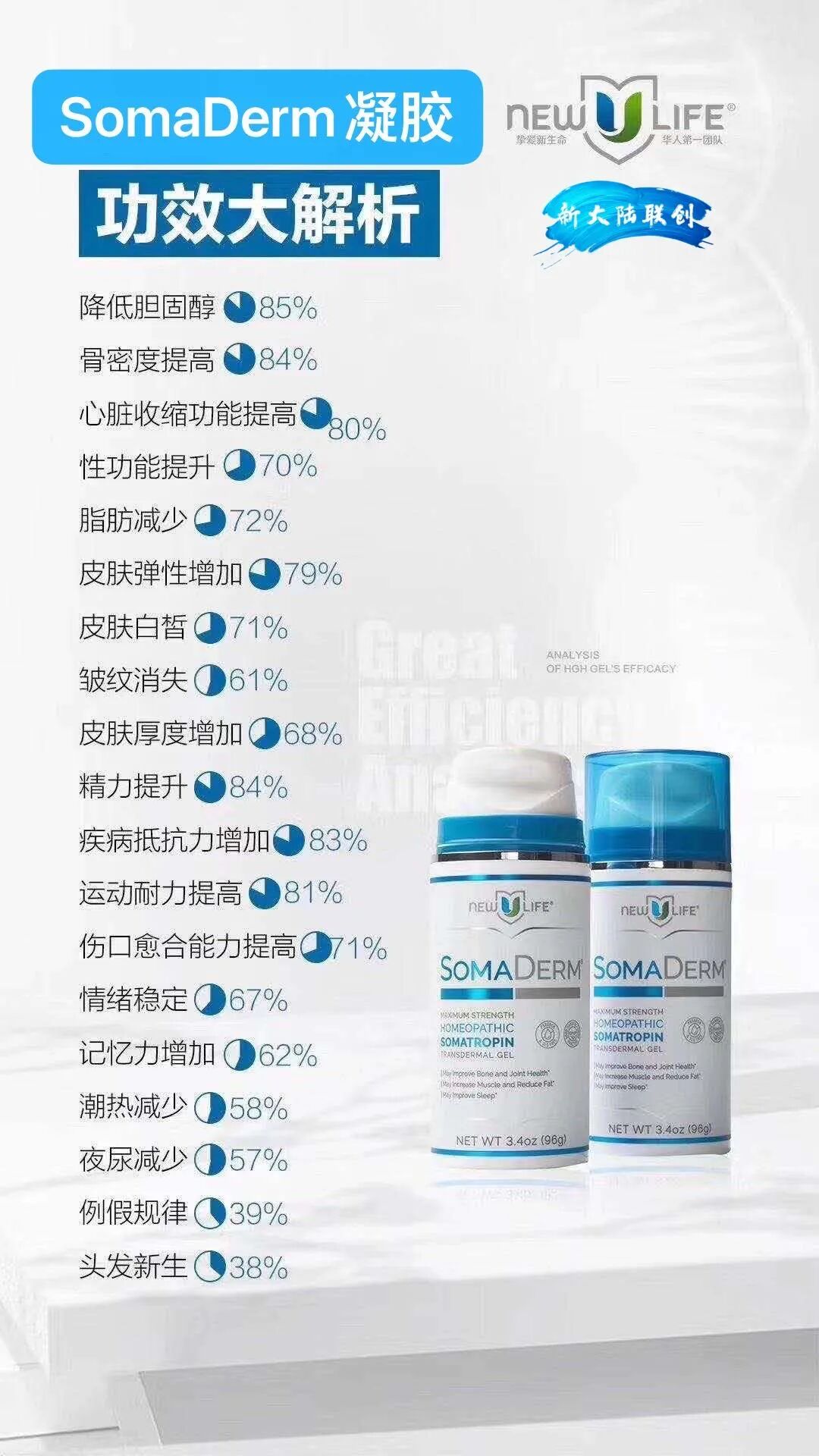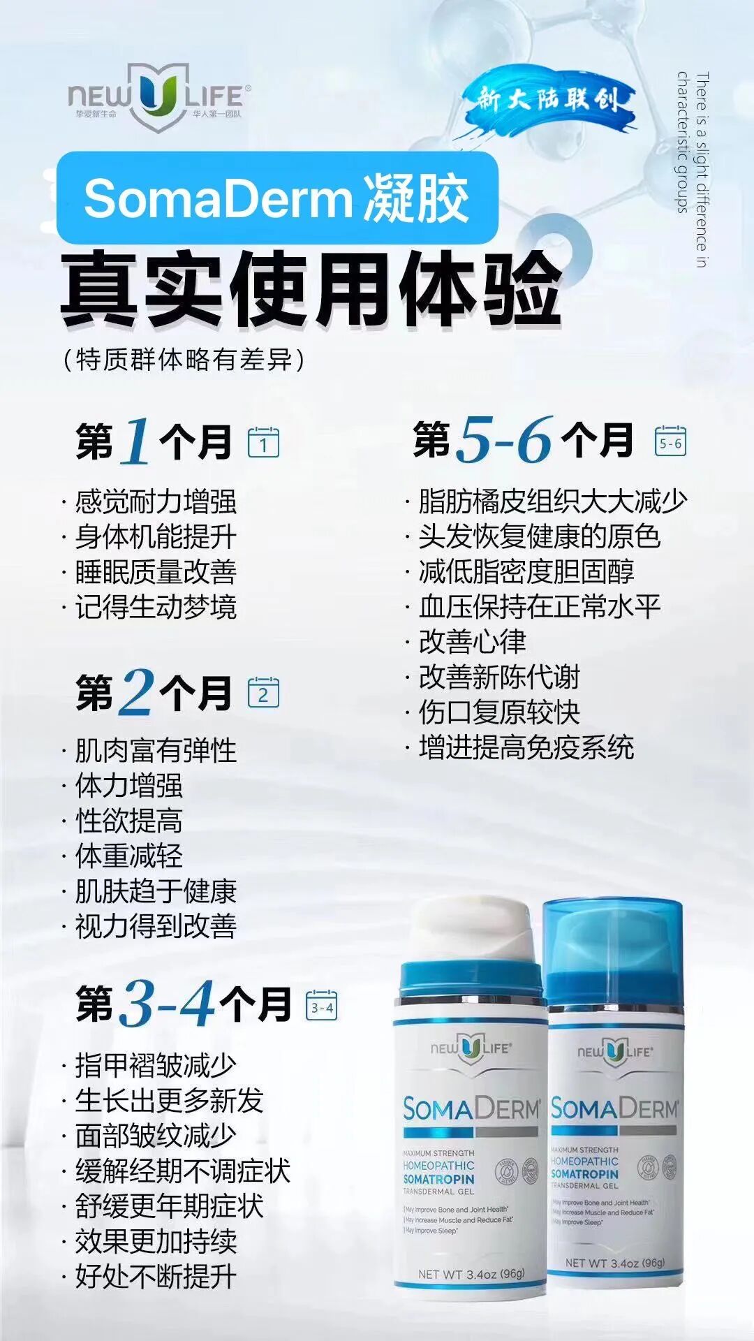 所以,不管你要三高、减肥、肠胃、亚健康等问题,请给身体必要的修复时间,持续使用6-12个月,配合健康生活方式,就会感受到新生命凝胶给您整个身体带来的变化。期待重返健康、青春、靓丽。