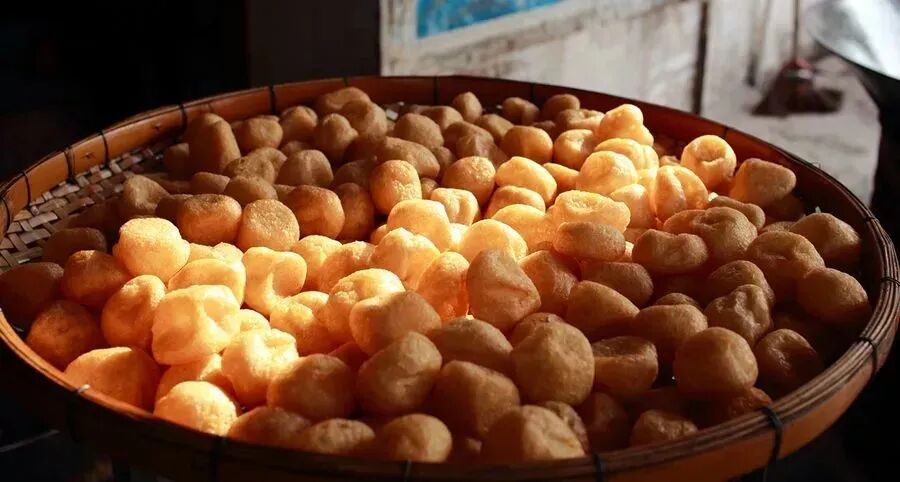 皱纱鱼腐巧妙融合了罗定本地新鲜鲮鱼肉与豆腐的制作工艺。选用优质养殖区捕捞的新鲜鲮鱼肉,经过精细去骨、剁碎、搅拌,再加入适量淀粉和蛋清,手工捏制成形后,轻炸至外皮金黄酥脆,内里却保持着鱼肉的鲜嫩细腻。