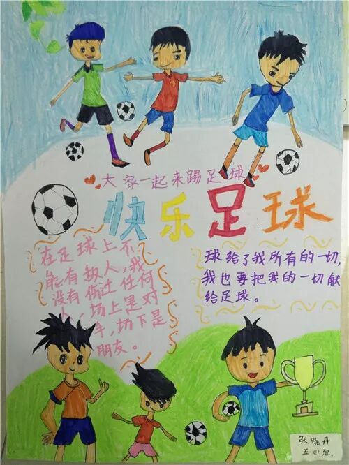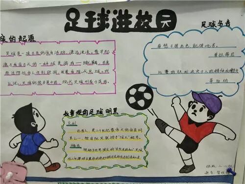 足球小报,绘出慧小学子足球梦 足球最早起源于中国。《战国策》中就曾记载战国时期的齐国都城临淄开展足球运动的情况。 党的十八大以来,以习近平同志为总书记的党中央把振兴足球作为发展体育运动、建设体育强国的重要任务摆上日程。2015年的《中国足球改革总体方案》中明确指出,要把校园足球作为促进青少年健康成长的基础性工程,让更多的同学爱上足球、享受足球、参与足球运动。 慧小学子们的足球热情温暖着冬日的慧小。你们看,一幅幅设计巧妙、色彩缤纷的足球小报表达了孩子们对足球的热爱,也绘制出他们的足球梦。下面就跟随镜头一起来欣赏吧! 足球进校园 我们爱足球 快乐足球在脚下 足球小报专栏展示 运动让我们健康,运动让我们收获,运动让我们成长。目前学校还开展了班级足球对抗赛,希望同学们能热情参与,体验足球带给我们的快乐! 撰稿、摄影:体育组![]()