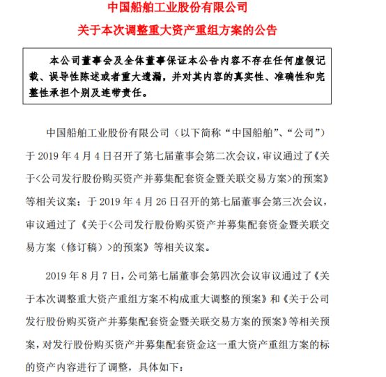8月14日深夜,中国船舶工业集团有限公司核心民品主业上市的重要平台中国船舶披露了调整后的重组方案。