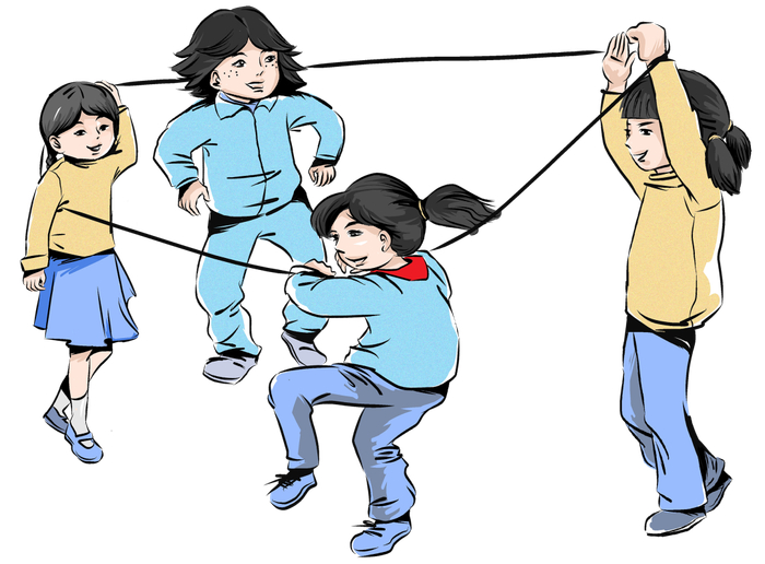 小时候哪怕下课十分钟,也要冲出去跳一会儿皮筋。皮筋还会慢慢升高,最后卡到腋下。我小时候老厉害了,轻松过关。