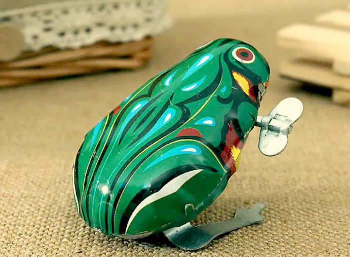属于80后90后的回忆,拧紧发条就能弹出去的玩具青蛙,小时候玩的不亦乐乎,几乎可以说是人手一个!外形其实还挺逼真呢,在地上弹弹跳跳的样子可好玩了~