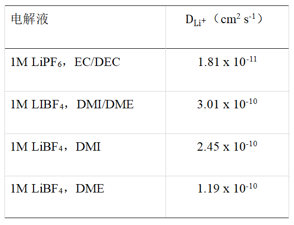 表 2. CFx正极在完全放电后(放电至1.5 V)的离子扩散系数
