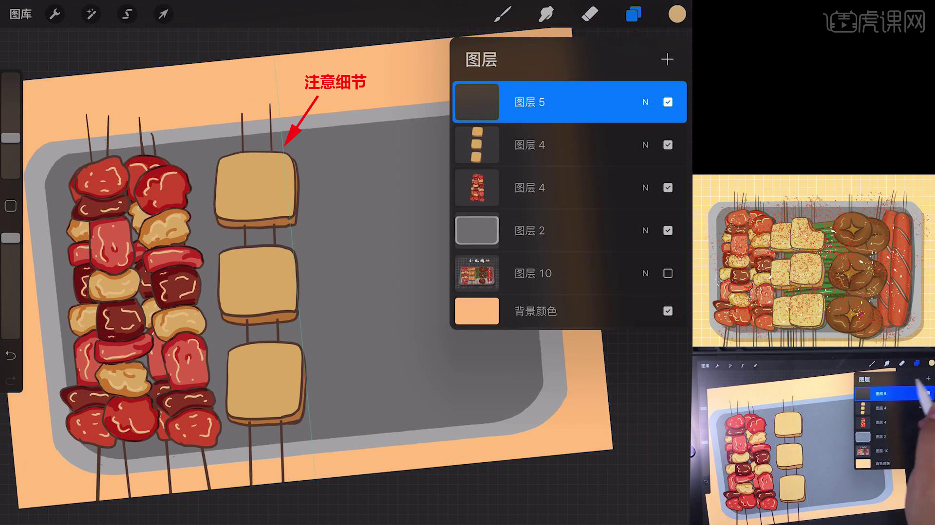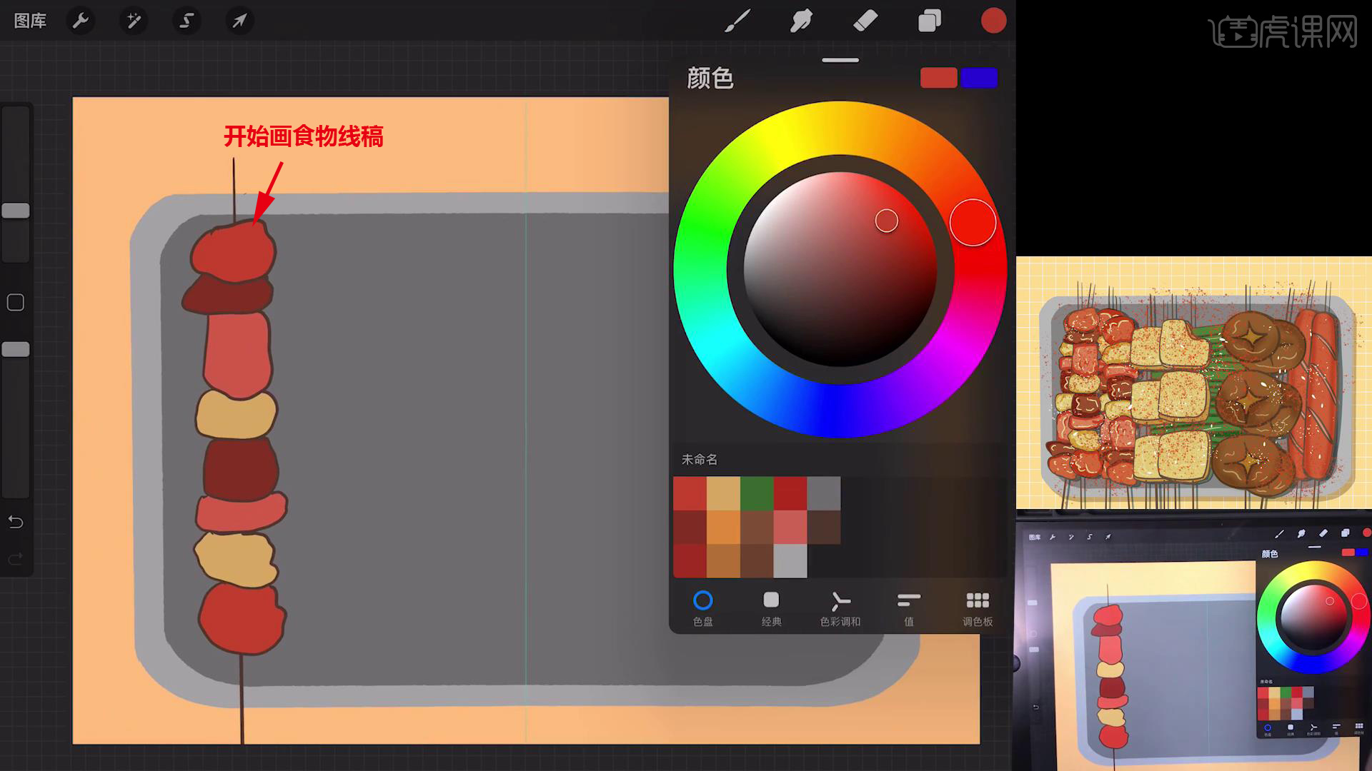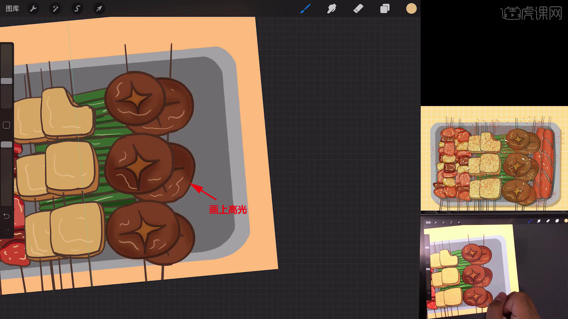 以上就是Procreate-简笔画-小烧烤-iPad绘画图文教程的全部内容了,你也可以点击下方的视频教程链接查看本节课的视频教程内容,虎课网每天可以免费学一课,千万不要错过哦!