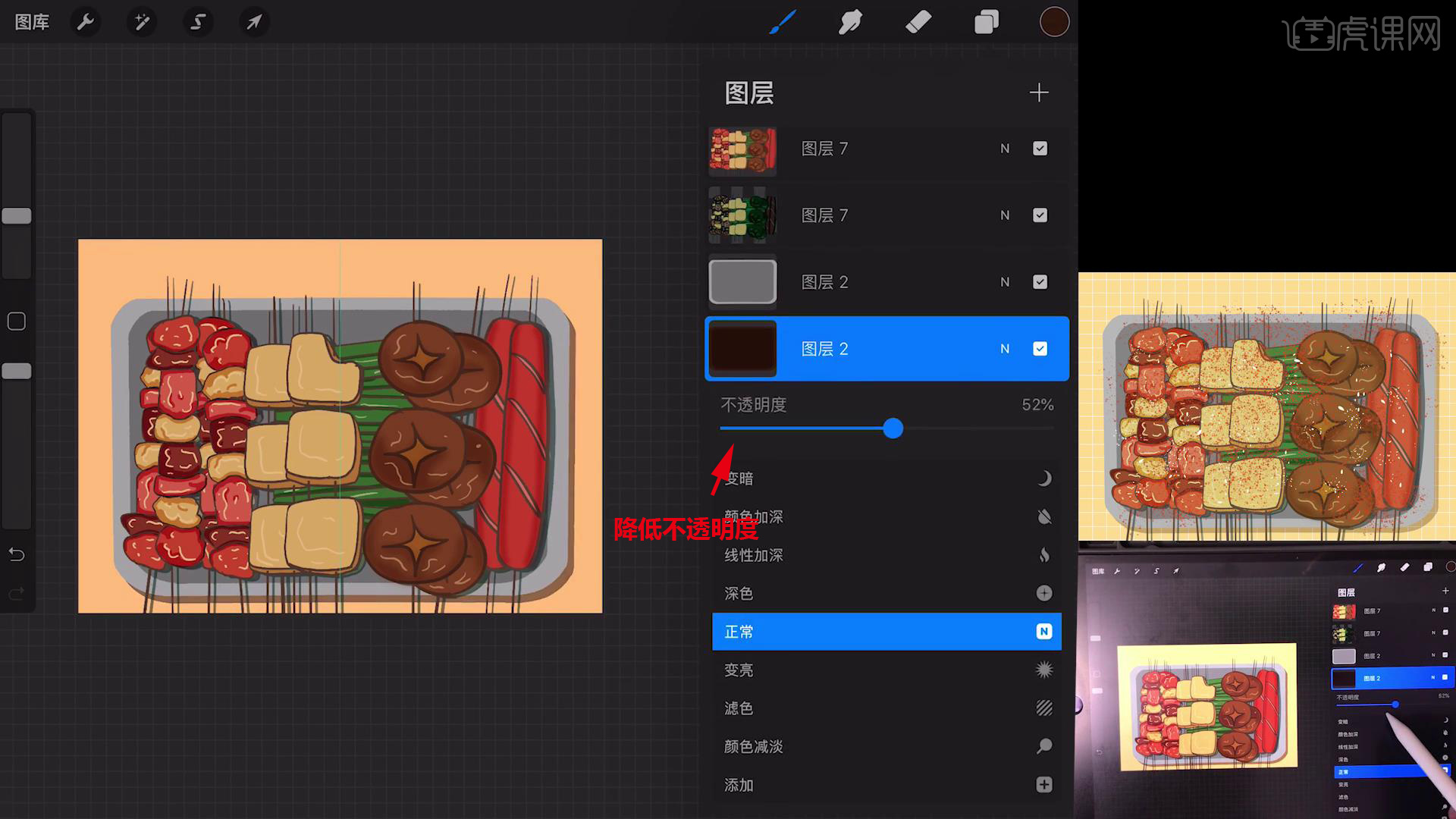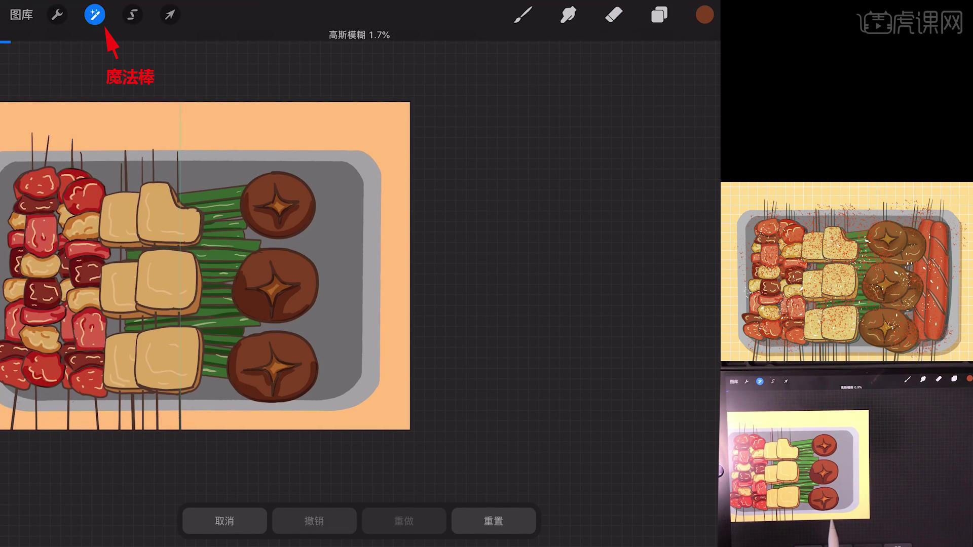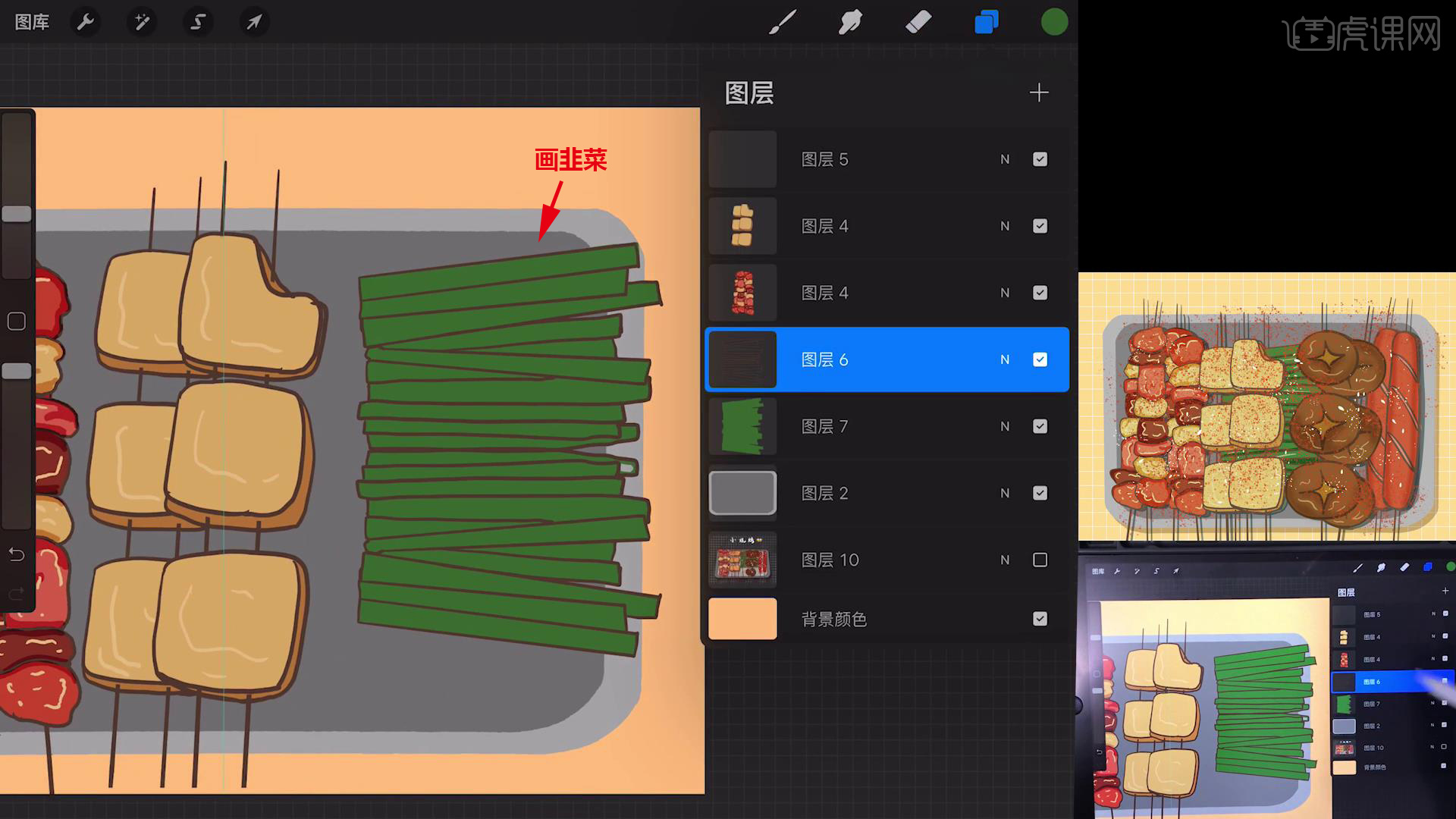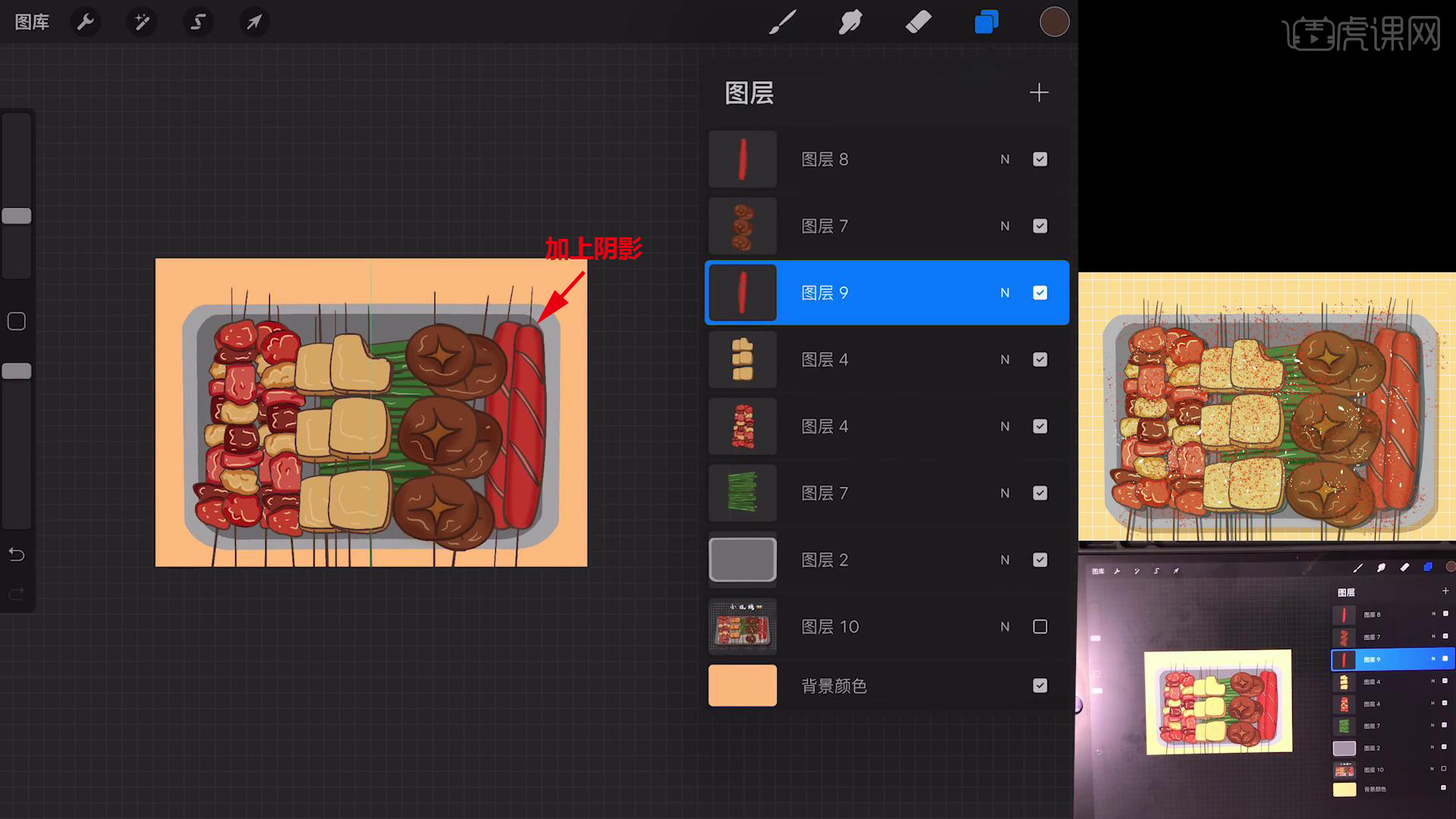 以上就是Procreate-简笔画-小烧烤-iPad绘画图文教程的全部内容了,你也可以点击下方的视频教程链接查看本节课的视频教程内容,虎课网每天可以免费学一课,千万不要错过哦!