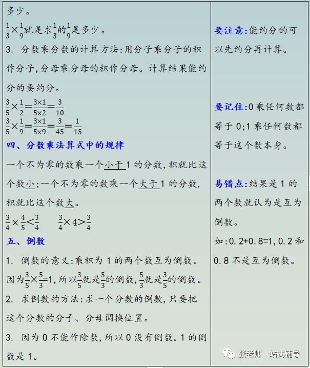④求一个数的倒数的方法:把这个数的分子分母调换位置;整数可以看成分母是1的分数。