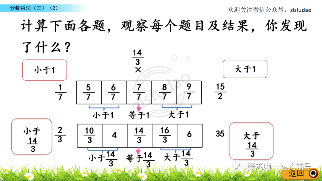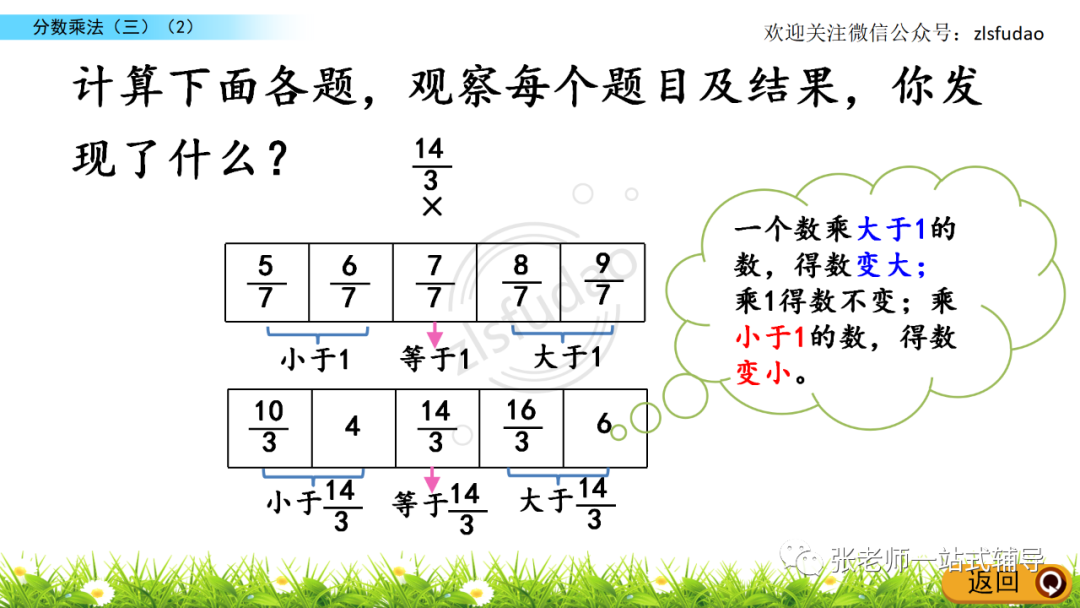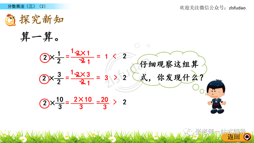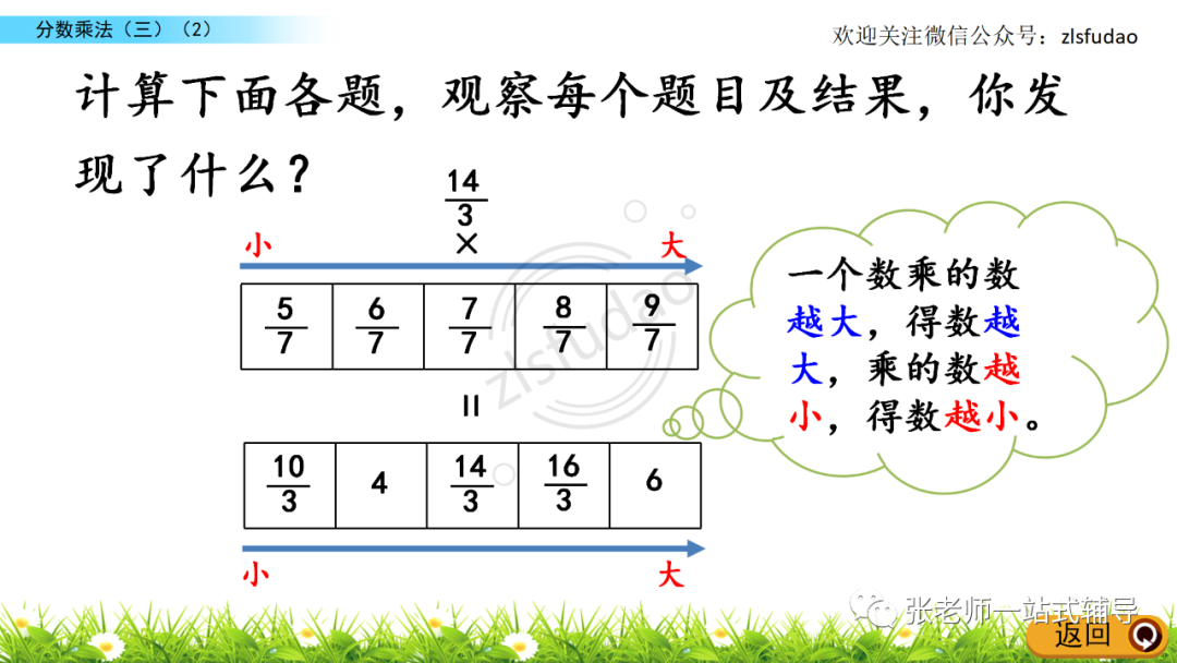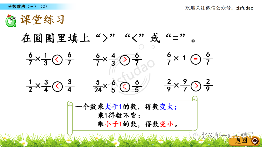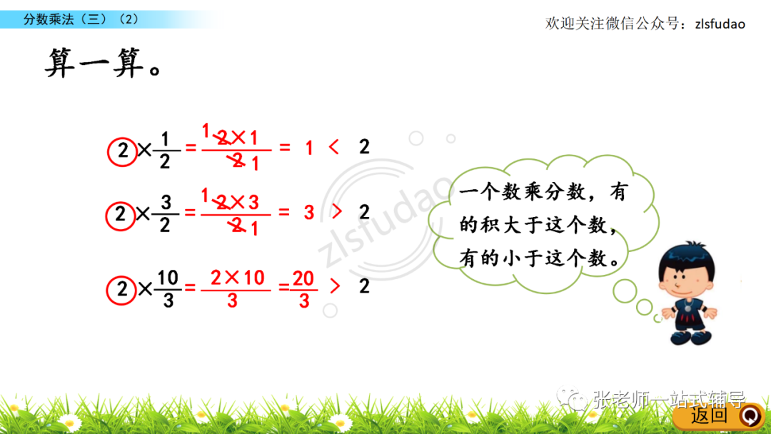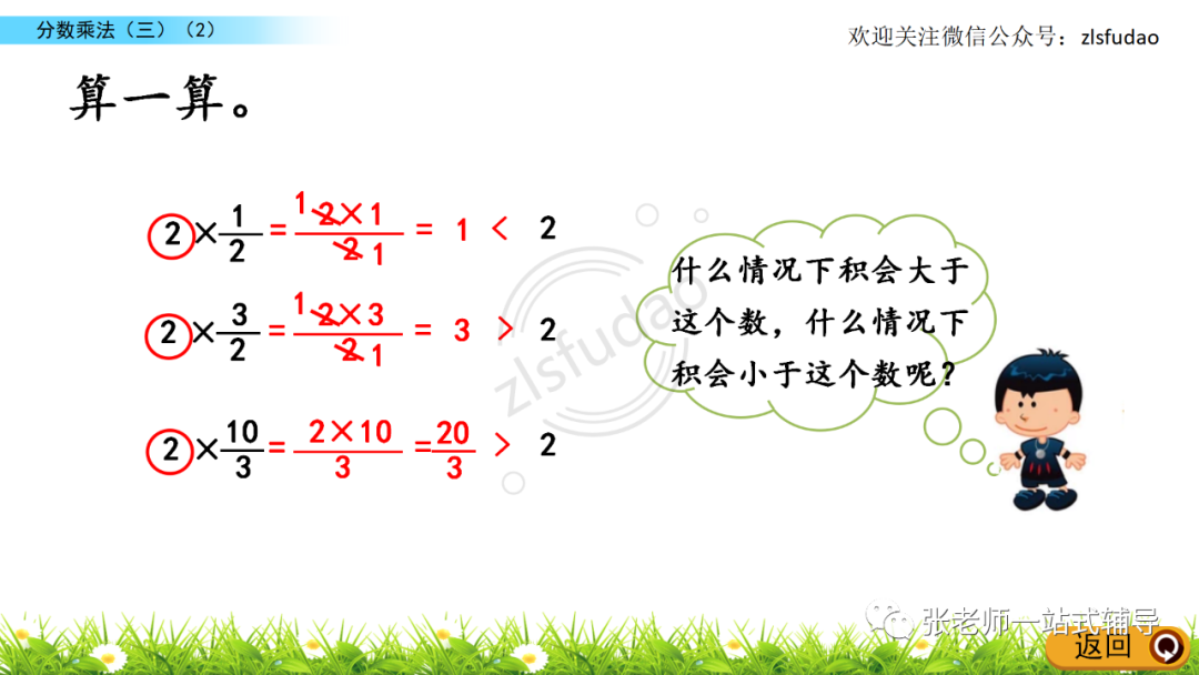 3、比较分数相乘的积与每一个乘数的大小。
