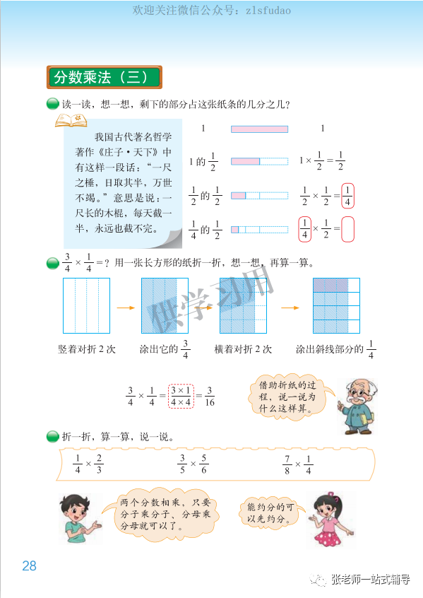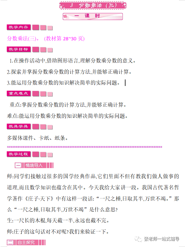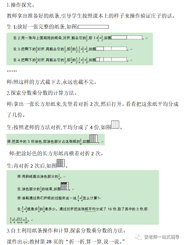 2.引导学生把直观操作与抽象推理相结合,理解分数乘法计算法则的推导过程。