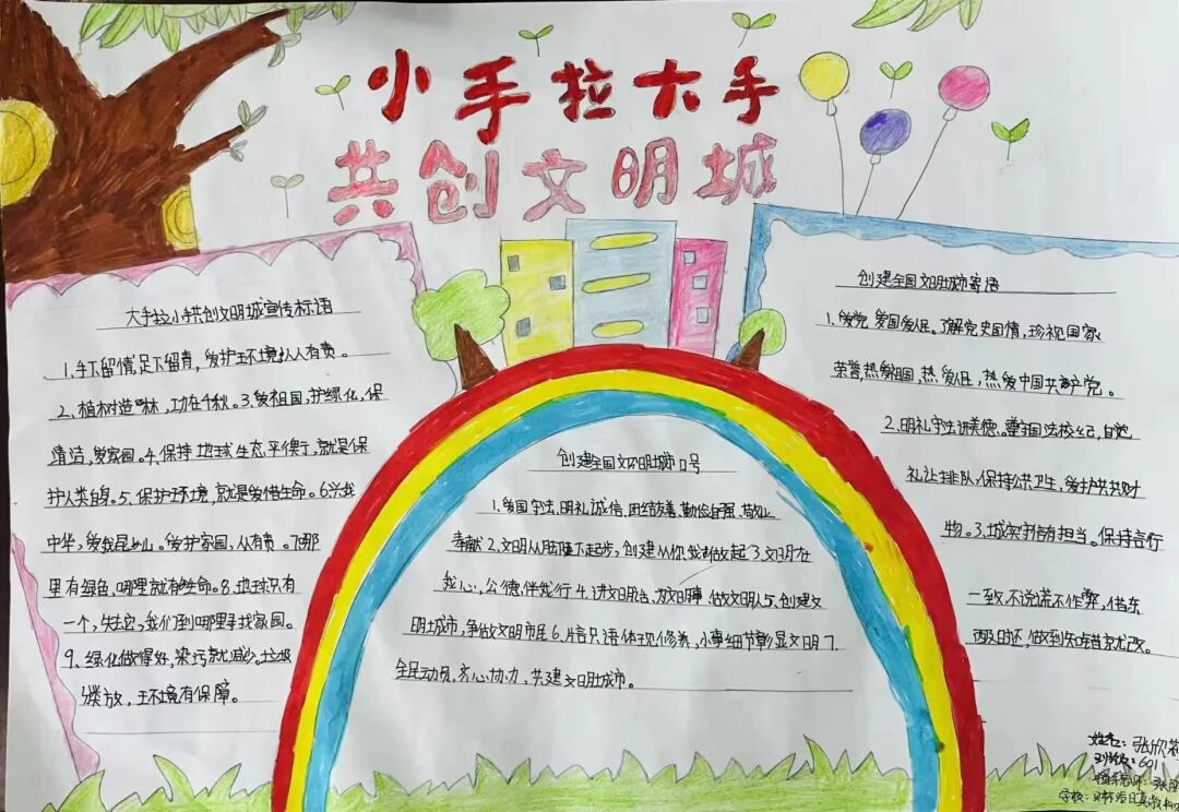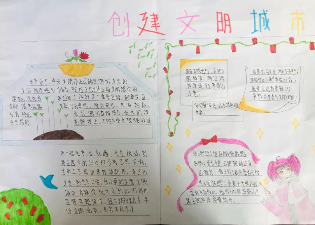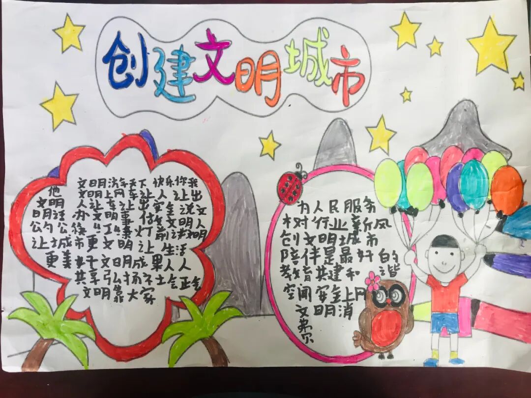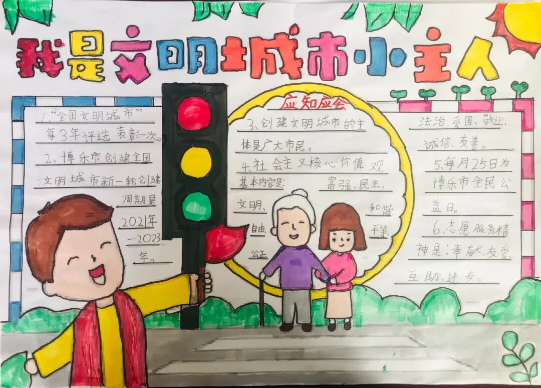 有态度 有温度 全网青年都在关注 为全面深入推进文明城市创建工作,营造文明、健康、和谐的氛围,进一步提高少先队员文明素质和城市文明程度,激发少先队员在文明城市创建过程中的先锋队作用,2022年4月26日,博乐市团委为积极响应全国文明城市创建工作,以网络投票的形式开展“小手拉大手,共创文明城”手抄报比赛活动。 大手拉小手手抄报 文明你我他,创城靠大家。“文明”两个字,不仅在口中,更要在行动!同学们,快快加入我们吧! “小手拉大手,共创文明城”手抄报比赛(一) 获奖作品 信息来源 | 博乐市团委 监 审丨孟根霞 ▼博乐市共青团现正式向广大读者征稿 征稿类型:参照本平台以往发布稿件; 征稿内容:文字、图片、视频、音频、h5、vlog、直播等。 投稿邮箱:blstw756@163.com