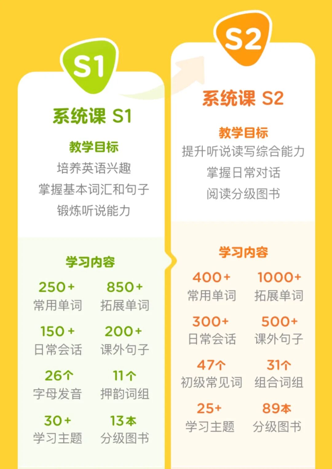 【课程分级】S1-S2,分别对标CEFR Pre-A1、A1