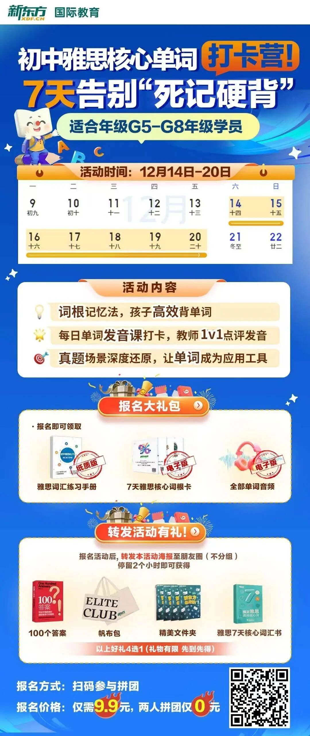 01 初中英语,高中英语词汇量分有多少? 在中考英语中,词汇是决定成绩的关键因素之一。根据要求,学生需要掌握1600个单词,涵盖核心动词、形容词、名词以及基础短语。这些词汇是考试题型的基础,也是语法、阅读和写作的支撑。然而,进入高中后,词汇要求会陡然增加,达到3500个单词,是中考词汇量的两倍以上。对很多学生而言,中考词汇尚且吃力,高中的词汇量提升更成为不小的挑战。 02 中考改革趋势,词汇量越来越重要? 近年来,天津中考英语改革显著加速,考试内容从过去的语法知识点转向词汇的实际运用。据传,阅读理解比重从30分提升到40分,完形填空从10分提高到15分。这些调整突出了学生阅读能力的培养,而阅读能力的核心就在于词汇量。试想,一个词汇储备不足的学生,在面对一篇生词众多的文章时,如何快速理解主旨?如果词汇量够多,学生很容易读懂文章大概意思。 同时,完形填空要求学生结合上下文选择最恰当的词汇,如果单词差不多都认识了,选词填空的时候,就算不知道什么语法、大概意思,凭感觉和词汇也能排除一些很离谱的答案,正确的概率还是比较大的。 *天津市中考改革趋势预测来源网络,仅供参考 03 单词背诵法有哪些? 首字母背诵法 通过首字母提示,学生可以回忆单词拼写,尤其适用于首字母填空题。但这种方法脱离语境,长期记忆效果不佳,也难以运用到实际的阅读或写作中。 话题背诵法 通过将单词按主题分类,帮助学生在具体场景中记忆,例如教育、环境等。这种方法逻辑性强,适合提高写作能力,但对初中学生来说难度较大,话题词汇中可能包含大量生词。 单元背诵法 天津初中目前广泛使用的,按照教材单元顺序记忆单词,优点在于与课程同步,学习目标清晰。但单元词汇彼此独立,缺乏逻辑关联,难以构建系统的词汇网络,遗忘率较高。 相较之下,【词根词缀】背诵法更为科学。 04 为什么词根词缀背单词更科学? 相比传统的死记硬背,词根词缀记忆法通过理解单词的内部结构,帮助学习者建立起更牢固的记忆框架。这种方法注重逻辑性,让单词不再孤立,而是有规律可循,既能记住具体单词,也能培养举一反三的能力,大大提升词汇积累速度。 例如掌握词根auto(自动,自己),可以扩展为autopilot(自动驾驶)、autonomy(自治)、autograph(亲笔签名)等单词还能通过规律推导陌生单词的含义。 05 为什么5-8年级的学生需要背雅思单词? 当前初中的词汇量要求普遍较低,仅在1500-1600个单词左右,这远不足以支撑更高阶段的英语学习和运用。一旦进入高中,词汇量的要求会陡然增加至3500个单词以上,这种巨大的词汇缺口往往会让许多学生措手不及,导致学习压力陡增。提前掌握雅思单词,不仅可以在初中阶段打好基础,还能在高中更轻松地适应学习节奏。 除此之外,学好英语可以为学生未来的升学规划提供更多选择。中考固然重要,但它并非升学的唯一途径。 掌握高阶词汇、提升语言能力,学生不仅能为中考加分,还能为出国留学做好准备。可以说,提前学习雅思单词相当于给自己的人生规划增加了一份双保险。 06 加入雅思词汇打卡营,科学背单词 为了帮助学生更高效地记忆单词,新东方准备了雅思词汇打卡营活动。采用词根词缀记忆法,总结了210个常用单词和47个高频词根,帮助学生从构词规律入手,快速扩展词汇量。老师精心制作了多元的资料,包括【词根词缀图片】、【单词跟读视频】和【小测试】。 打卡营的学习总共分为三步: 阅读单词卡,学习词根词缀并了解含义 观看单词视频,结合例句理解含义,练习正确发音 并发送语音打卡 完成【小测试】,巩固学习成果 多感官的参与(图片、视频和读音练习)进一步强化记忆效果,显著提高词汇储备。 07 总结 在英语学习中,词汇是听说读写的核心基础,而掌握科学的单词记忆方法,是提升词汇量的关键。词根记忆法作为一种高效的学习方式,不仅能帮助学生快速扩展词汇量,还能从根本上理解单词的构成,提升记忆的深度和持久性。学生还能在阅读中推测生词含义,在写作中灵活运用词汇,为考试和实际应用打下坚实基础。这里举一个深圳市2018年中考阅读的例子。 如果孩子通过词根词缀记忆法,了解“velop,包、裹、卷”这个词根,很容易会理解enveloped“包住、裹住”这个单词。 如果您希望孩子掌握更科学的背单词方法,为未来的英语学习打下基础,欢迎扫码加入我们的词汇打卡营,开启轻松高效的学习之旅! 加入初中雅思词汇打卡营 7天告别死记硬背 扫描下方海报二维码参与 1人报名9.9元,2人成团免费 本文由新东方国外考试部撰写,转载请联系微信号tjxdf001 广告![]()