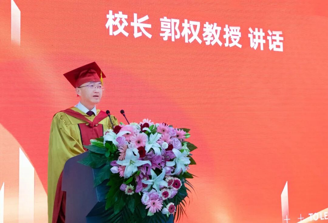 面对世界百年未有之大变局,面对新一轮科技革命和产业变革,同学们将面临更多风雨考验,也将拥有更广阔的发展空间。展望未来,郭权校长向全体毕业生提出希望、送上祝福:希望同学们以赤子之心满载家国情怀,以拼搏担当提升人生高度,以勤学善思涵养浩然之气;祝愿同学们在新的征程中,不负青春韶华,不负伟大时代,激扬青春,开创更加美好的未来!母校是同学们永远的心灵家园和坚实后盾,期待同学们能常回家看看。