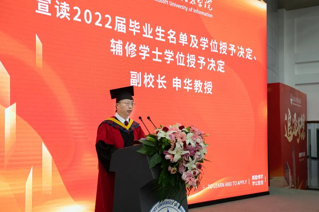 会上,副校长申华教授宣读2022届毕业生名单及学位授予决定、辅修学士学位授予决定。